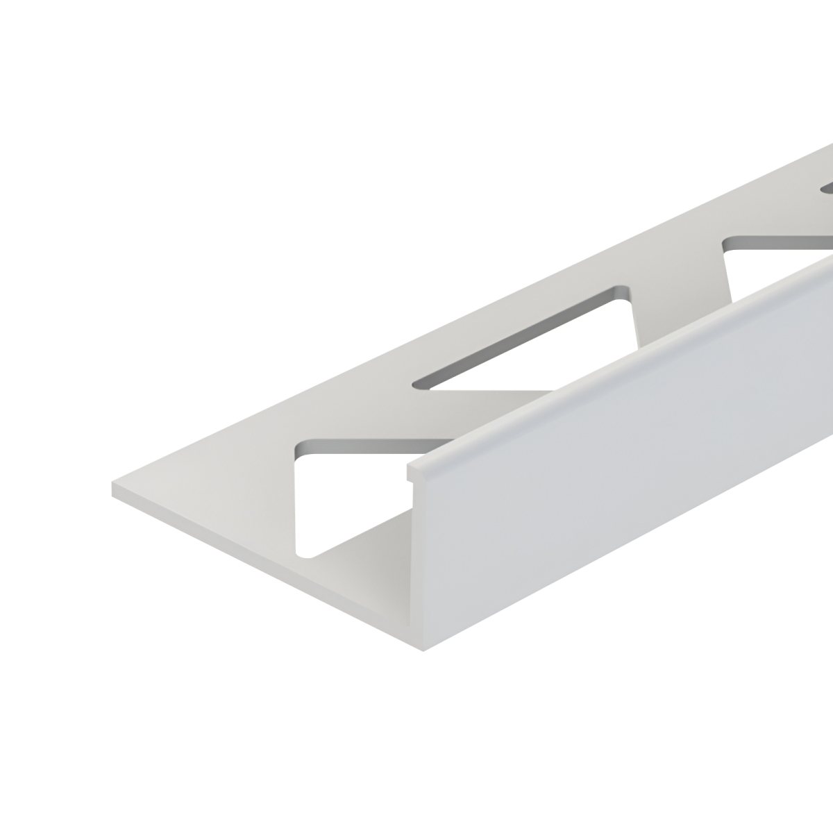 Ez a jázmin színű, szögletes kialakítású PVC csempeélvédő letisztult megoldást kínál a csempével burkolt felületek éleinek lezárására.