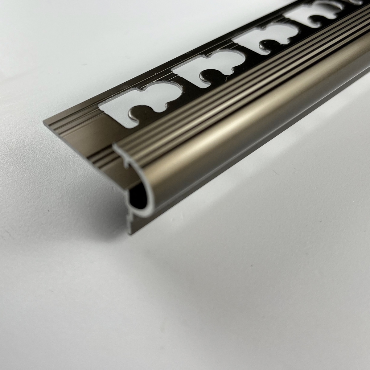 Eloxált alumínium beépíthető lépcsőprofil 10mm x 2,5m íves bronz