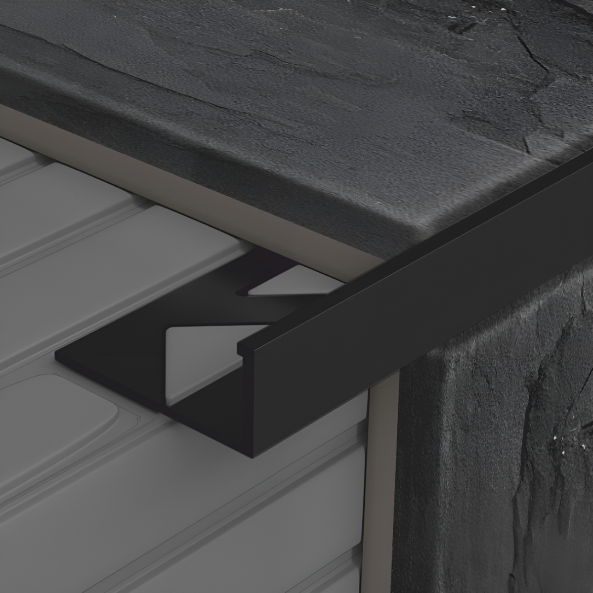 A matt fekete felület modern, visszafogott megjelenést ad, amely jól illeszkedik különböző burkolatokhoz és fugaszínekhez. Az alumínium alapanyag igényes kiegészítővé teszi egyszerűbb és magasabb kategóriájú burkolatok mellett egyaránt. A szinterezett felület egységes megjelenést biztosít, miközben segít az élek pontos lezárásában. Beltéri és kültéri burkolásoknál is használható.