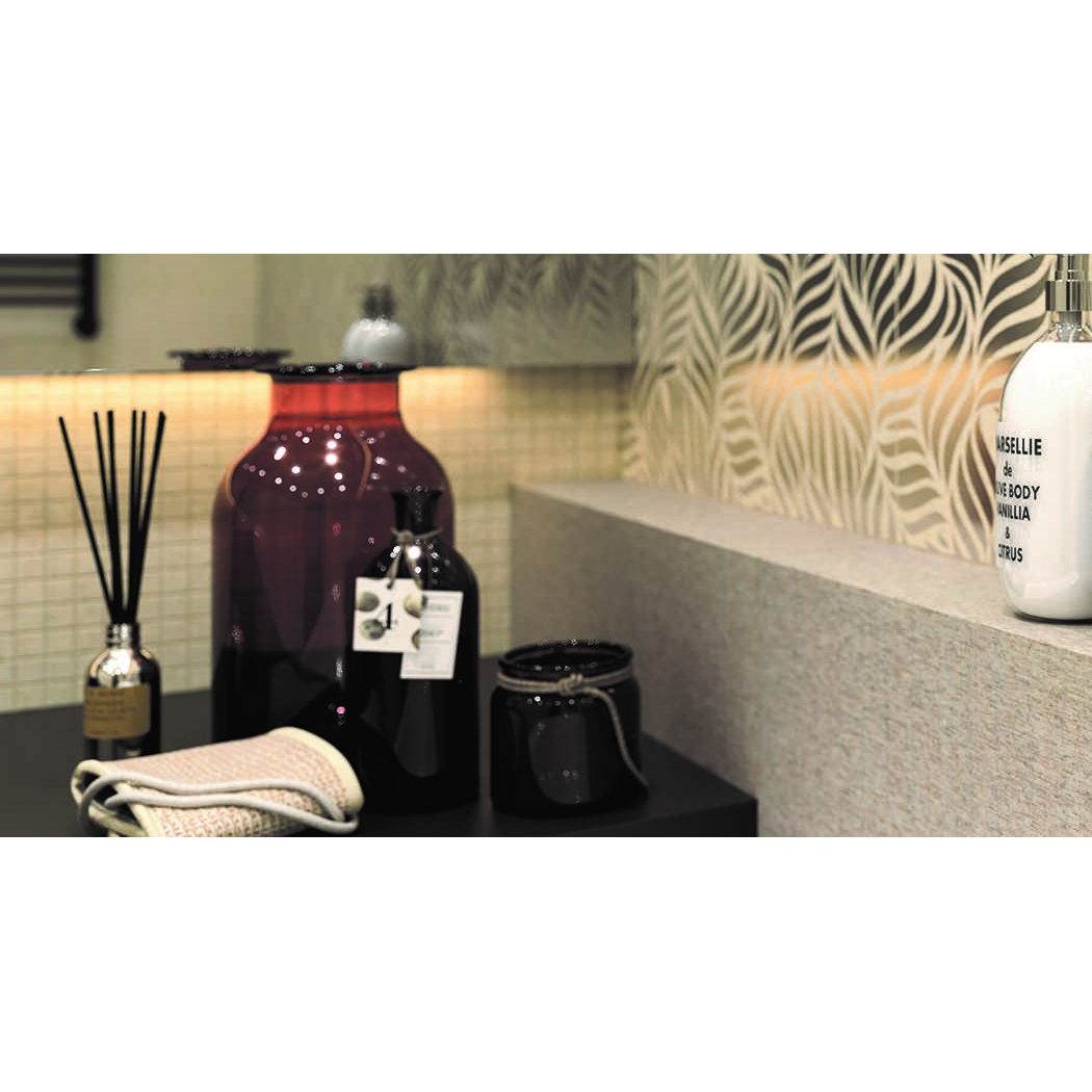 A bézs szín meleg és nyugtató hatású, könnyen kombinálható más semleges árnyalatokkal vagy fa hatású burkolatokkal. A mozaik kivitel különösen jól használható kisebb falszakaszokon, zuhanyfülkében, vagy akár dekorcsíkként más lapok mellett.