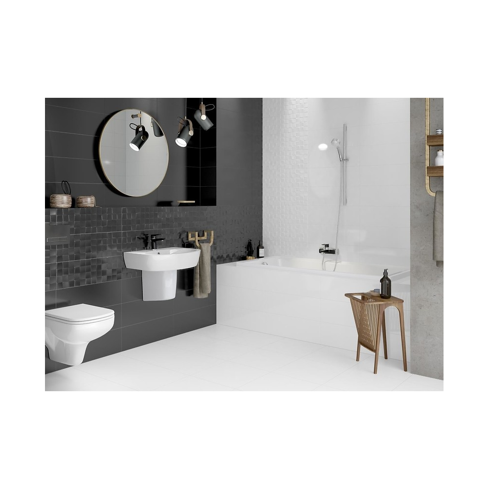 Alaya fali csempe 20x60 cm méretben, 1,08 m2/csomag kiszerelésben, fehér színben. Az ALAYA csempecsalád ötvözi a klasszikus fehér és a fényes fát. A fényes, geometriai, lineáris alaplapok burkolatának hidegessége a fa melegével kombinálva kiegyensúlyozott összetételt eredményez. A fa jellemzi a belső teret, miközben rendkívül univerzális és elegáns marad. A kollekciót finoman fényes, patchwork lapok egészítik ki, amelyek tovább hangsúlyozzák a kialakítását és eleganciát adnak a térnek. A fürdőszobában megfelelően felburkolva modern és egyedi hangulatot kelt. A kollekció stílusa mindenképpen megfelel a modern és a hagyományos fürdőszobáknak.