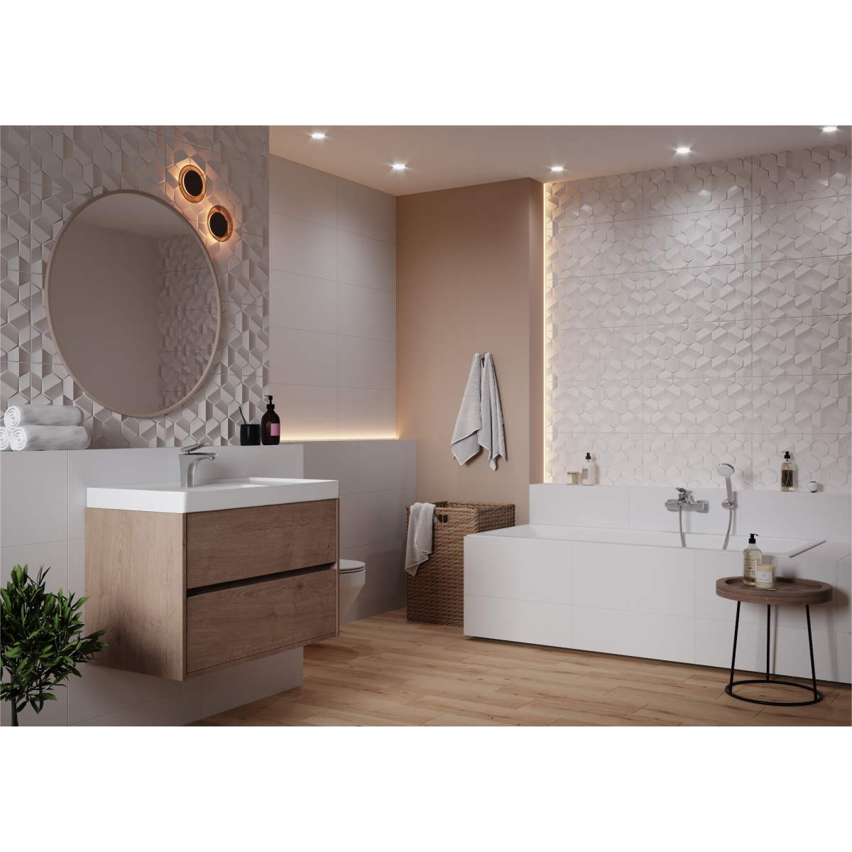 A Cersanit Alterio fali csempe letisztult, fehér megjelenésével és strukturált, hexagon mintázatával különleges vizuális élményt nyújt.