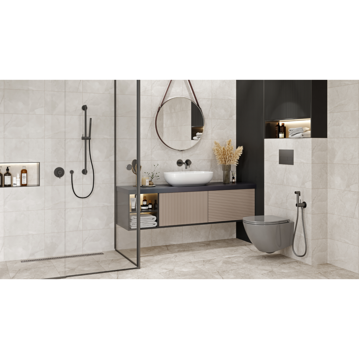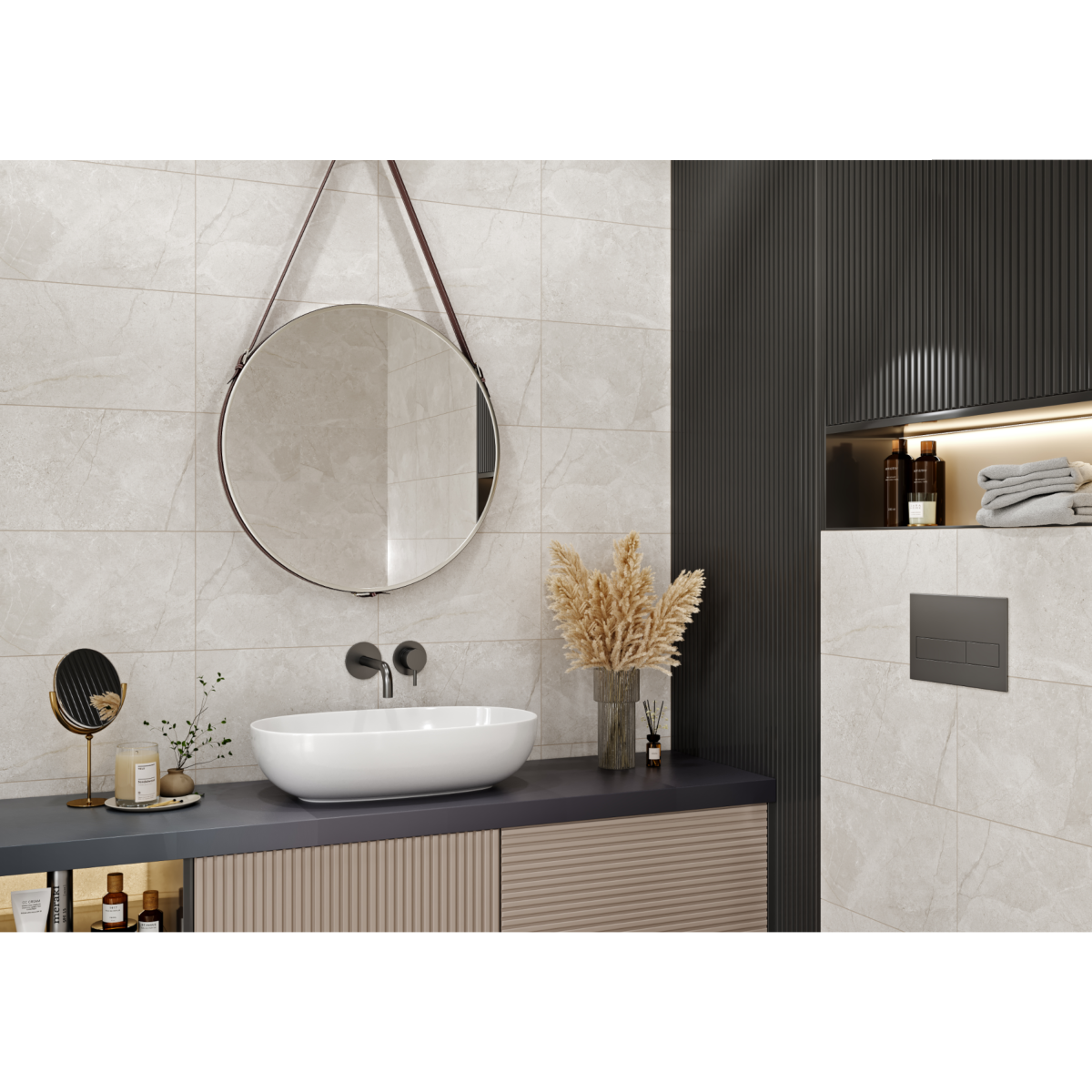 A Betty fali csempe bézs színével és kőmintás felületével visszafogott, mégis karakteres megjelenést biztosít a fürdőszobák vagy konyhák falainak burkolásához.