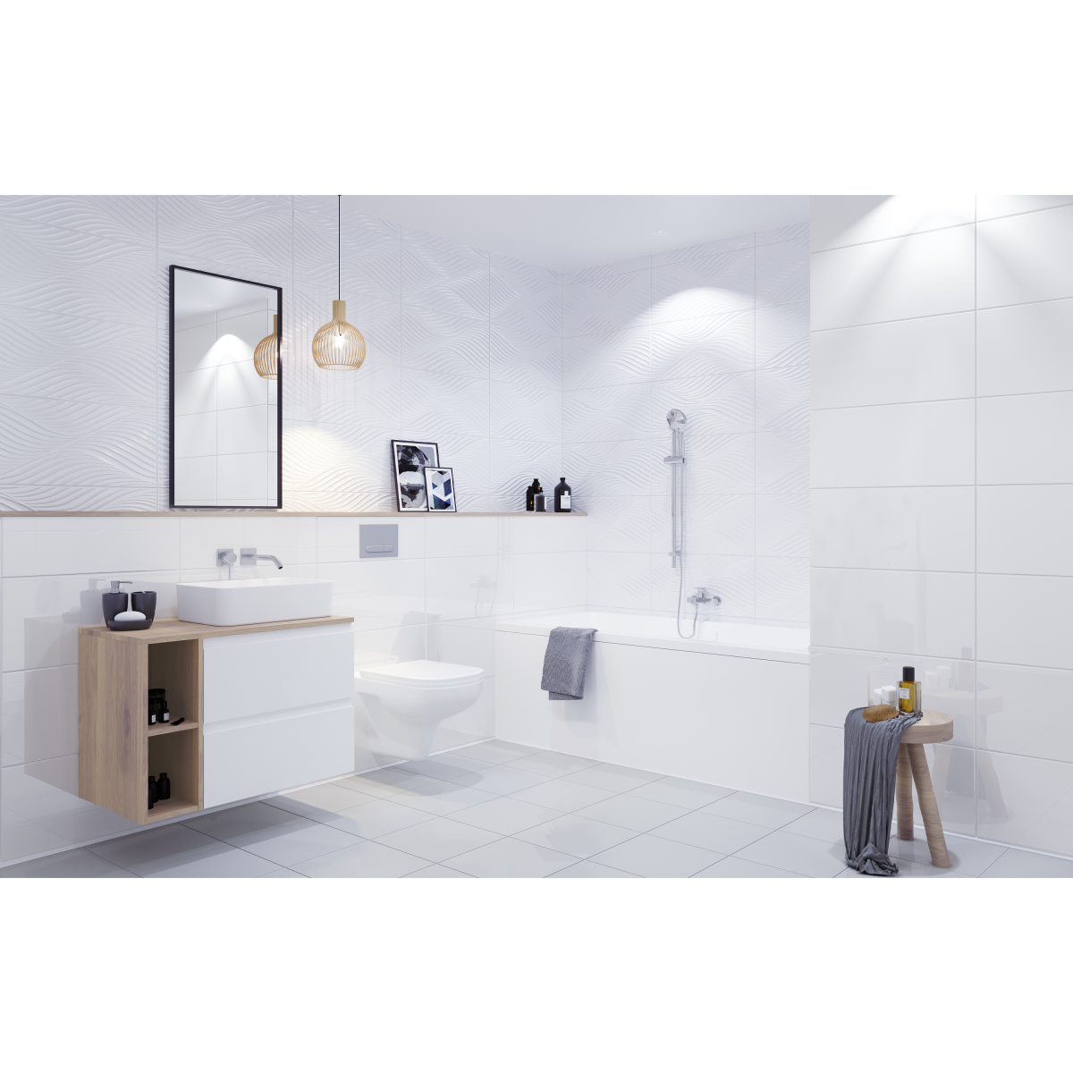 A Cersanit Blanka fali csempe letisztult, fényes fehér felületével segít világosabbá és tágasabbá tenni a belső tereket.