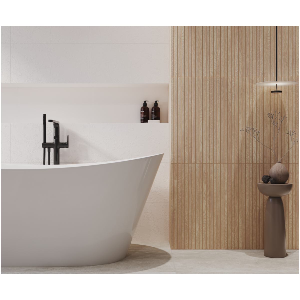 A Boseli Wood fali csempe a fa természetes mintázatát idézi meg világos bézs árnyalatban, strukturált matt felülettel. A 29,8×59,8 cm-es méretének és rektifikált (élvágott) kialakításának köszönhetően letisztult, szinte hézagmentes burkolást tesz lehetővé. Harmonikus megjelenése beltéri terekben többféle stílushoz is jól illeszkedik.