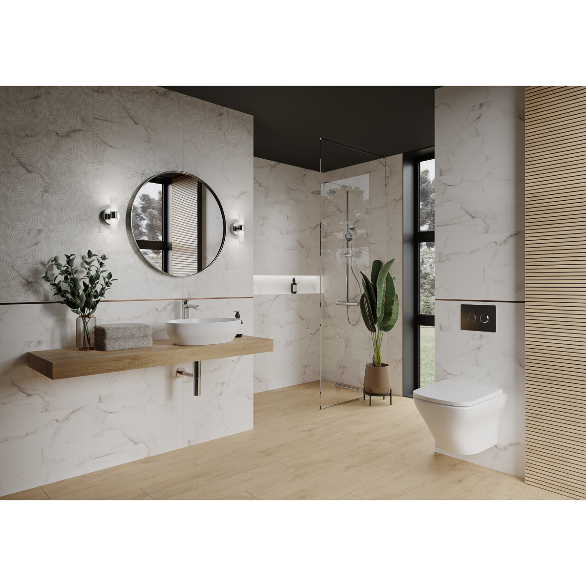 A Cersanit Calacatta Classico fali csempe klasszikus márvány mintázatával és fényes felületével exkluzív megjelenést ad fürdőszobának vagy más beltéri helyiségnek.