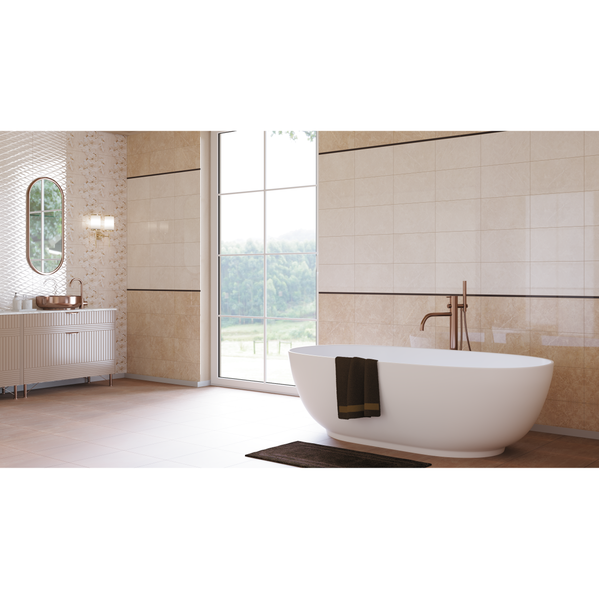 🚿 Fürdőszobában – klasszikus, fényes burkolatként