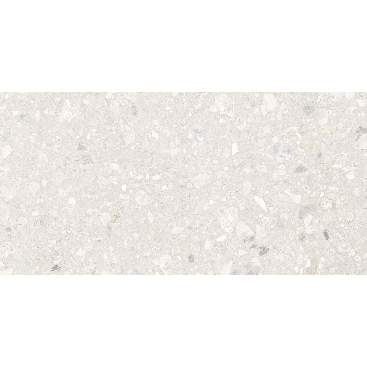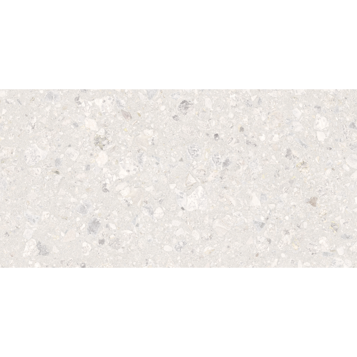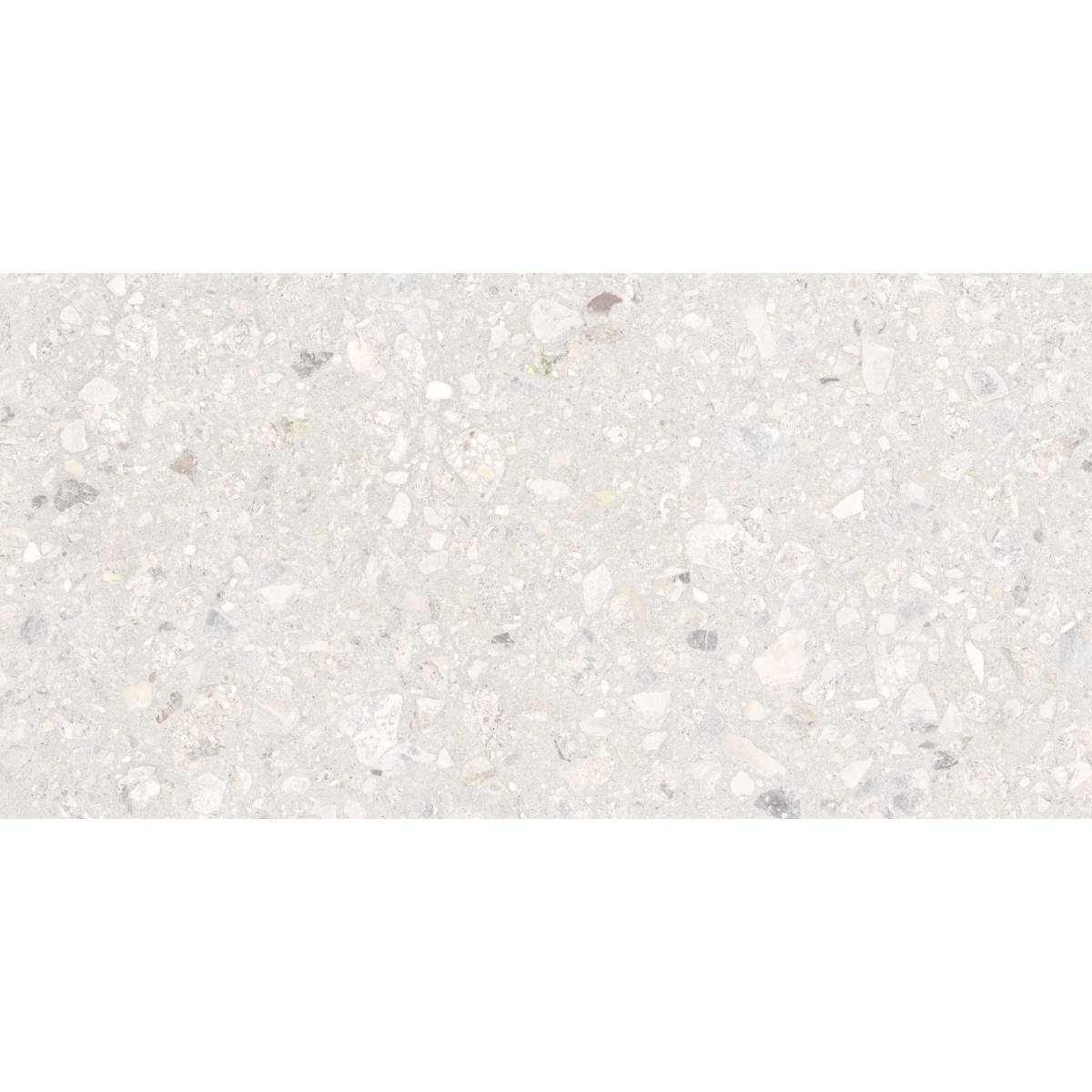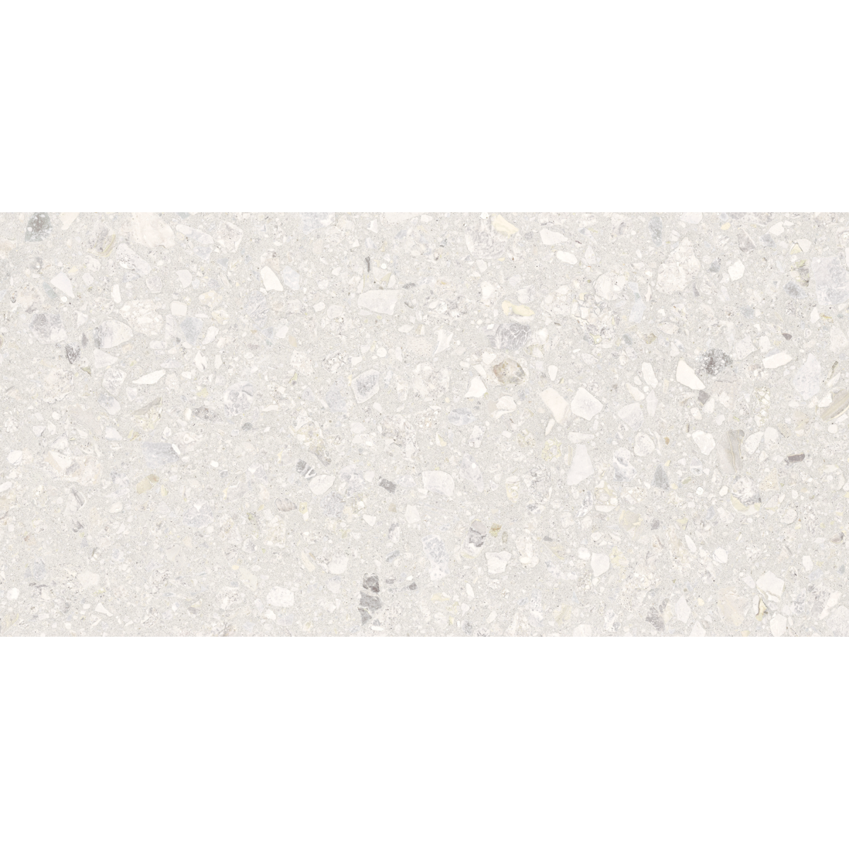 A Fresh 30×60 cm-es fehér, terrazzo mintás fényes fali csempe modern, világos és tiszta megjelenést ad bármely beltéri térnek. A terrazzo minta finom, aprószemcsés vizuális hatása díszítő és praktikus egyszerre, különösen olyan helyiségekben, ahol könnyen tisztítható, friss összkép szükséges. Ideális választás fürdőszobába, konyhába, előszobába vagy bármely beltéri falszakasz modernizálásához.