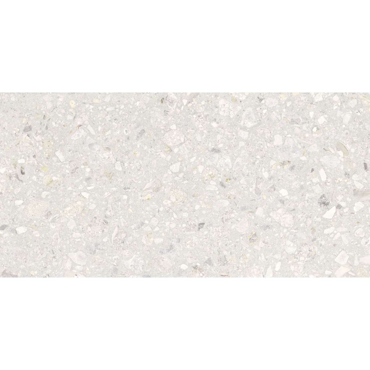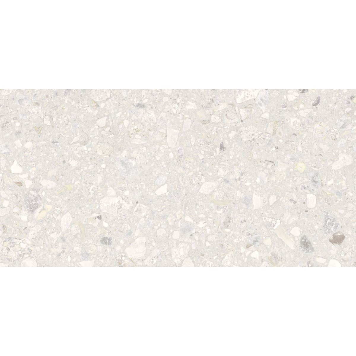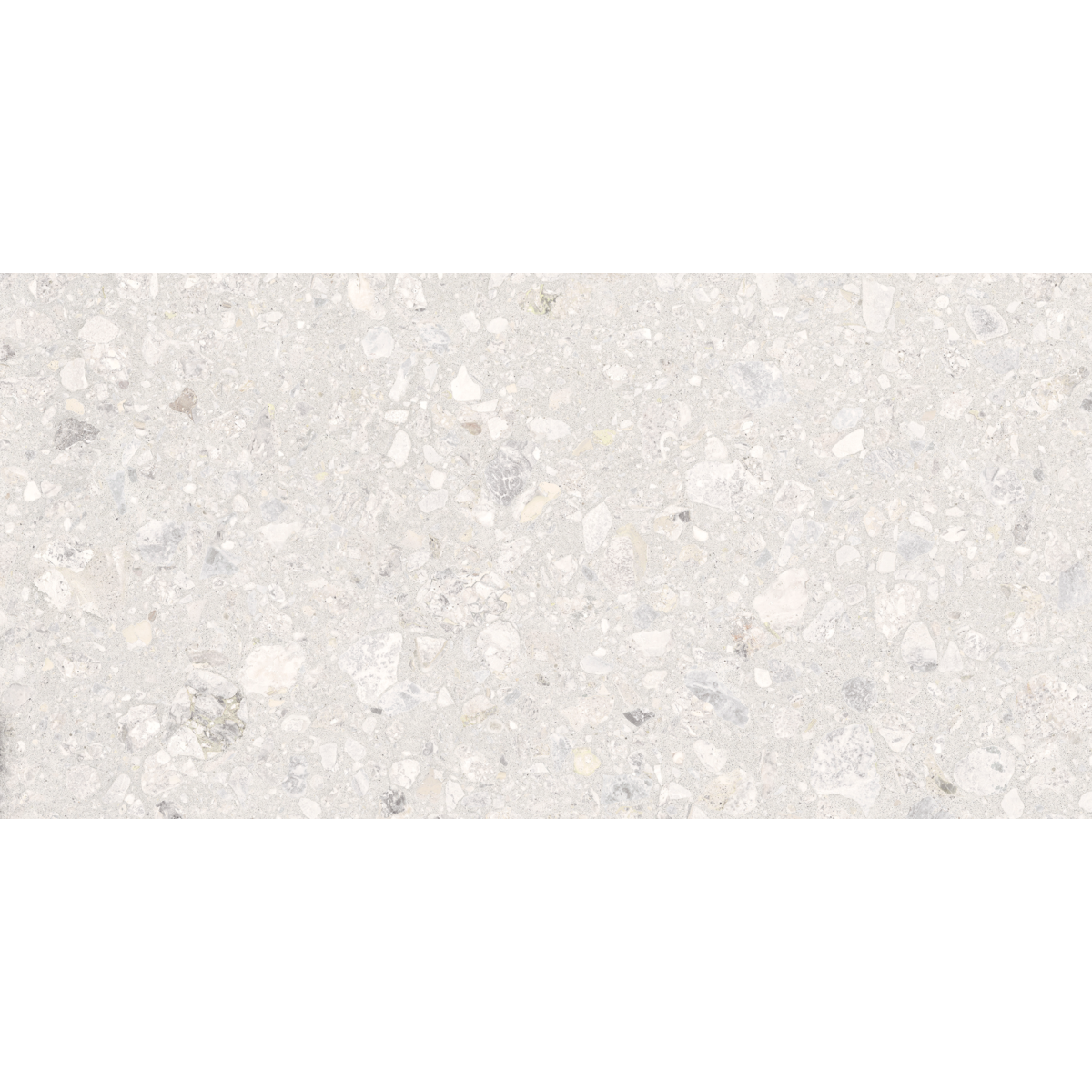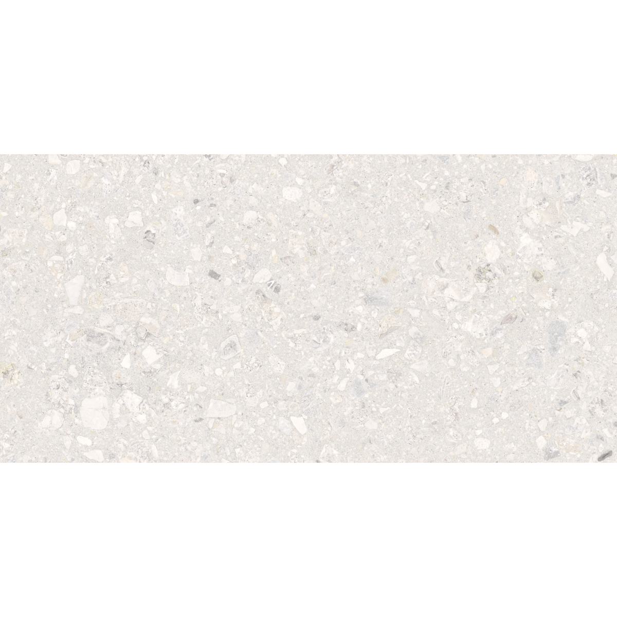 A Fresh 30×60 cm-es fehér, terrazzo mintás fényes fali csempe modern, világos és tiszta megjelenést ad bármely beltéri térnek. A terrazzo minta finom, aprószemcsés vizuális hatása díszítő és praktikus egyszerre, különösen olyan helyiségekben, ahol könnyen tisztítható, friss összkép szükséges. Ideális választás fürdőszobába, konyhába, előszobába vagy bármely beltéri falszakasz modernizálásához.