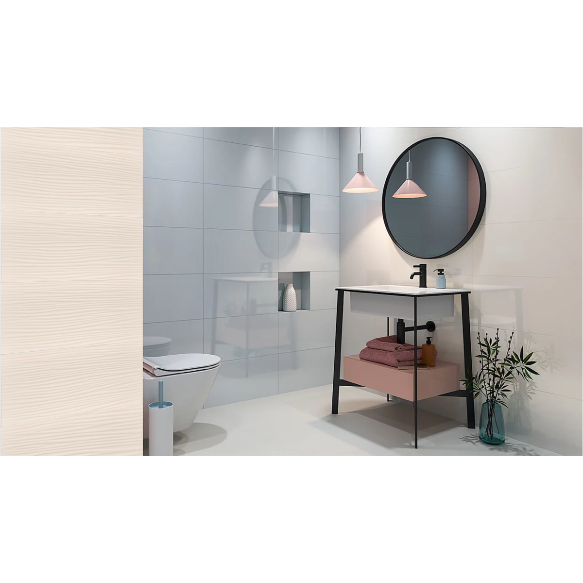 🚿 Fürdőszobában – dekoratív falburkolatként