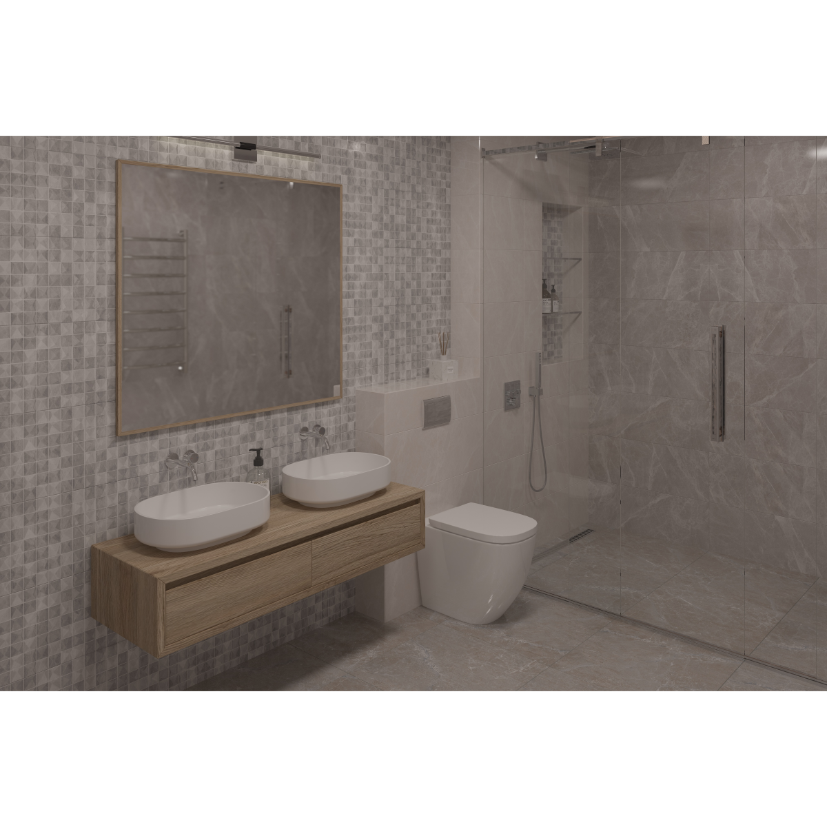 A Persia beltéri 30 x 80 cm szürke fali csempe elegáns, szürkés árnyalatával és nagytáblás méretével letisztult, karakteres burkolatot biztosít belső falfelületeken. A nagy méret előnye, hogy kevesebb fugázás szükséges, így a felület rendezettebb, vizuálisan tágasabb hatású.