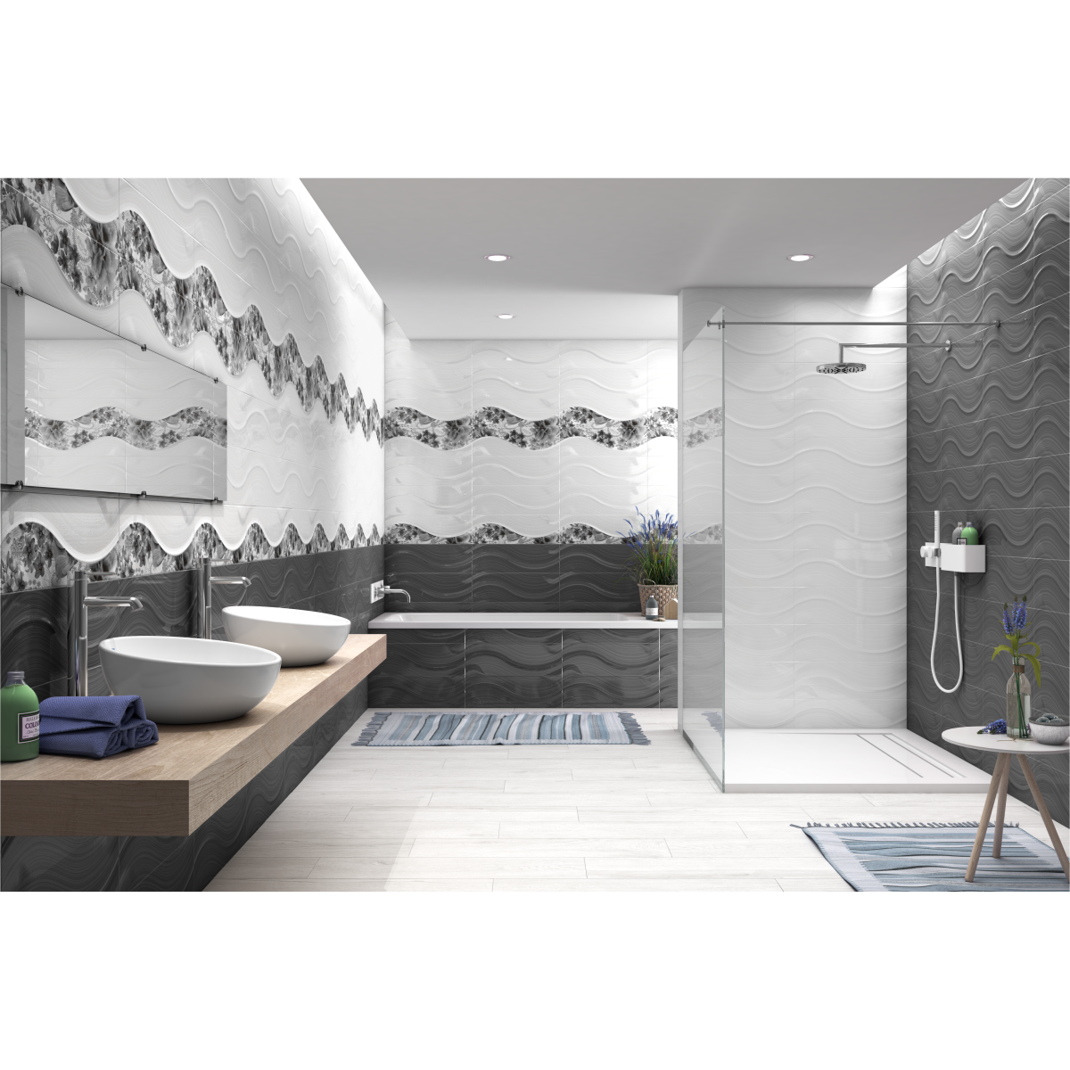 🚿 Fürdőszobában – drámai kontrasztként vagy elegáns falként