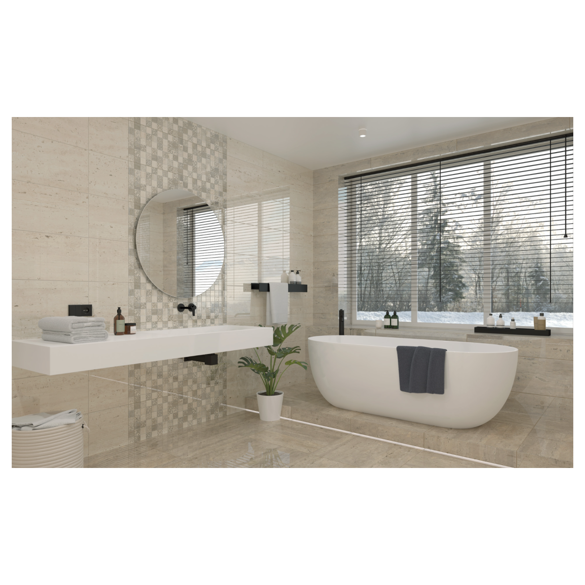 🚿 Fürdőszobában – világos, modern csempézett falakhoz