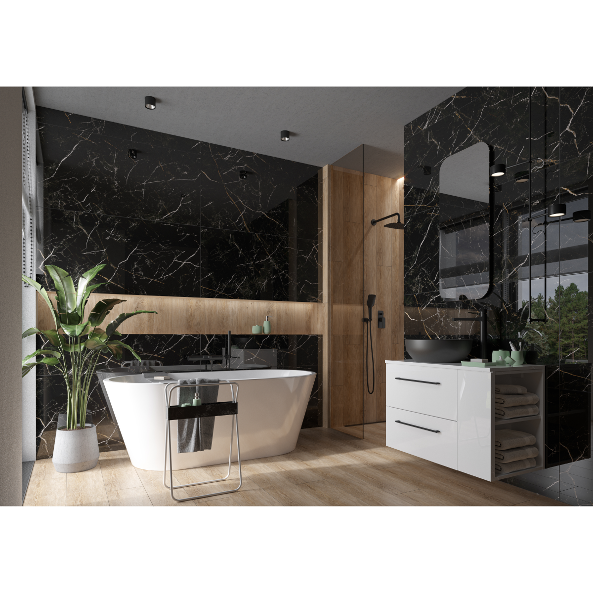 A Cersanit Galactic fekete fényes gres padlólap modern és elegáns megjelenést kínál, amely tökéletes választás exkluzív terek kialakításához. A 60×120 cm-es nagyméretű lap letisztult, egységes burkolatképet eredményez, az élvágott kivitel pedig pontos, keskeny fugázást tesz lehetővé.