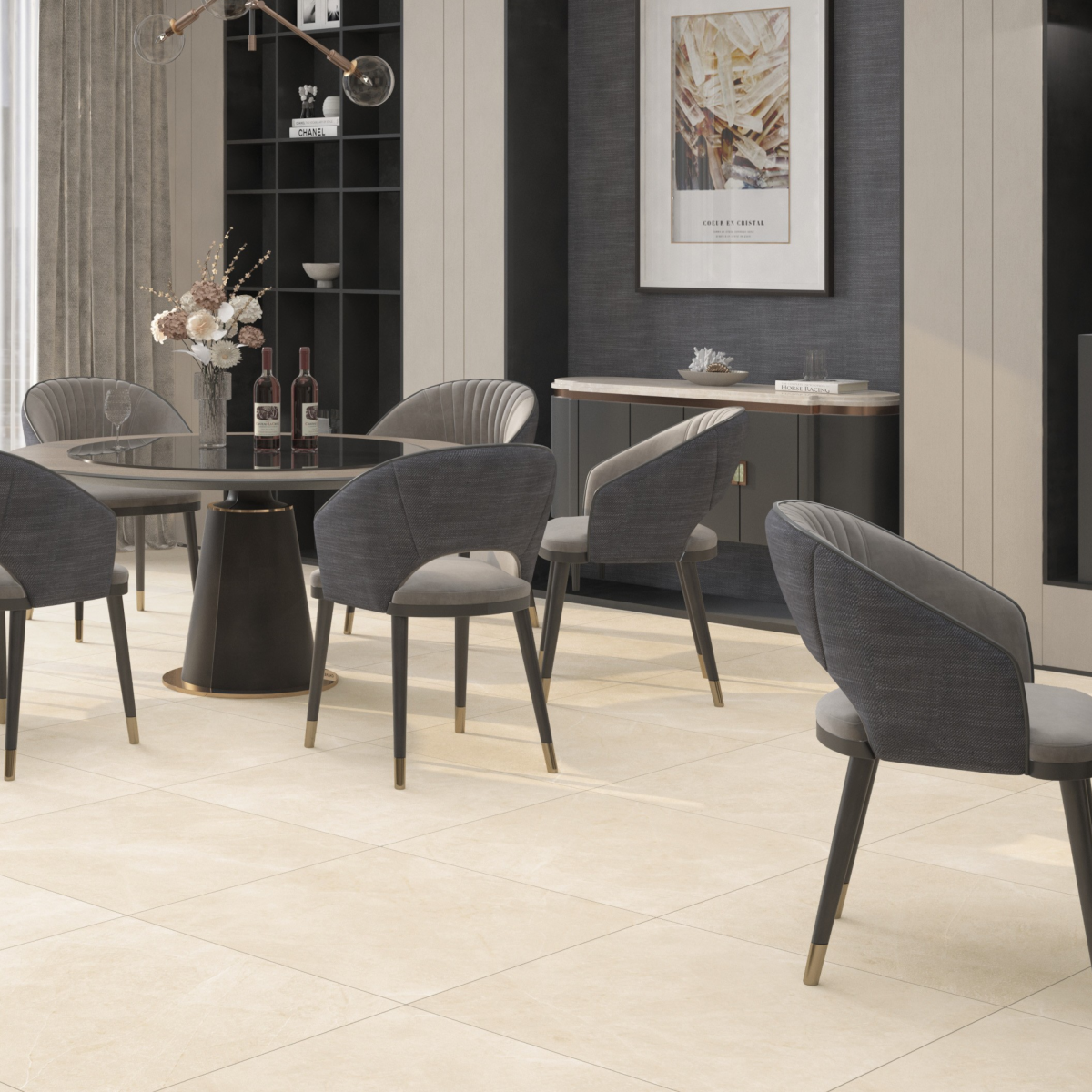 Az Elegant 60×60 cm-es bézs kőmintás gres padlólap harmonikus, természetes megjelenésével letisztult és időtálló megoldást kínál beltéri burkolatokhoz. A matt felület kellemes tapintású, visszafogott fényű hatást nyújt, a gres anyag pedig hosszú távon is tartósabb és könnyen tisztítható felületet biztosít. A 60×60 cm-es formátum modern, egységes megjelenést eredményez, amely jól illik klasszikus és modern enteriőrökbe egyaránt.