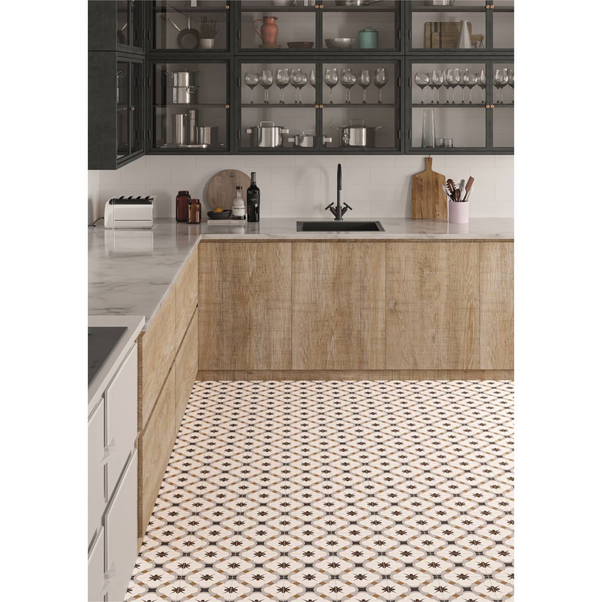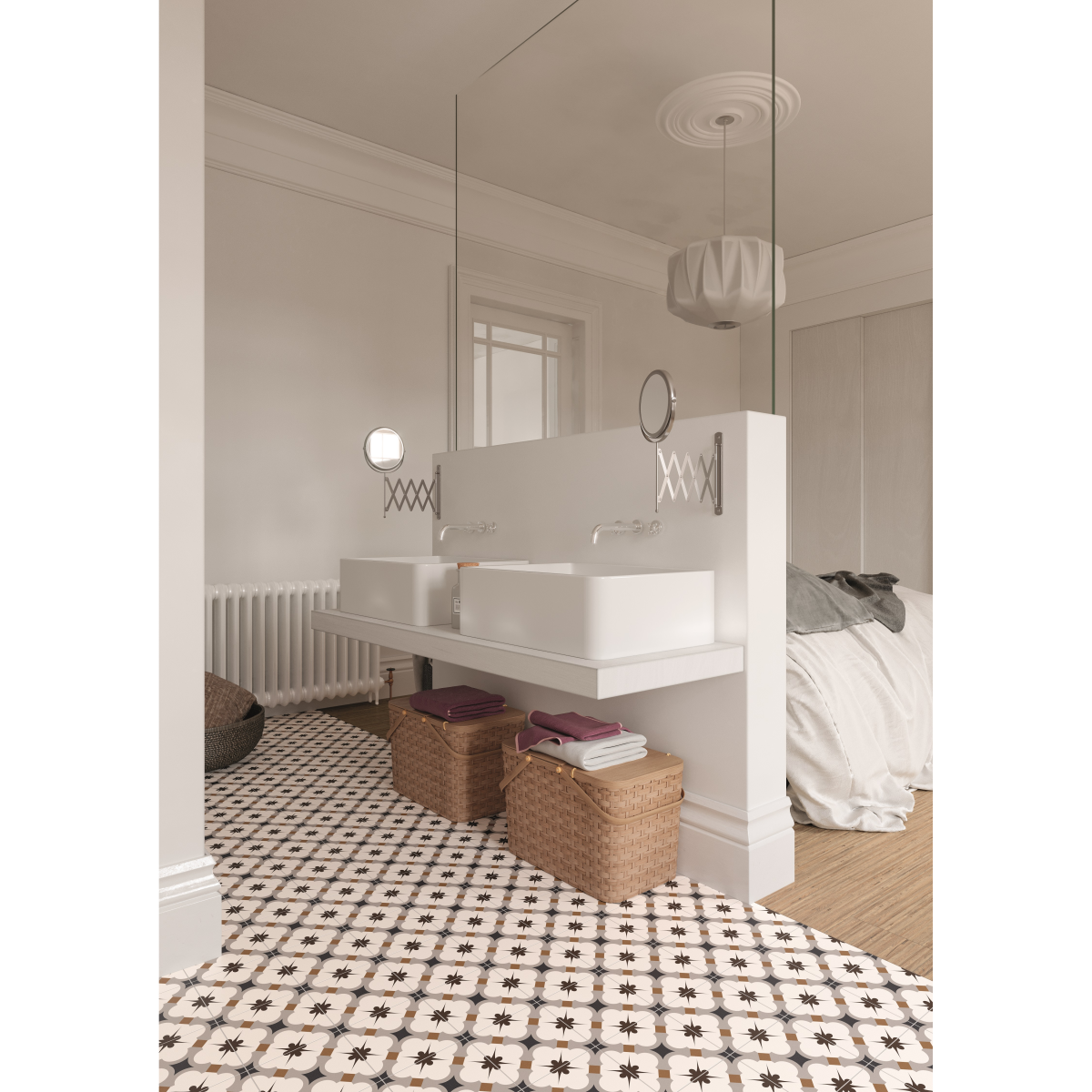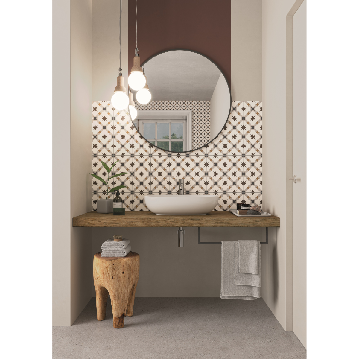 A 33,15 cm x 33,15 cm-es méret klasszikus megjelenést biztosít, míg a kőporcelán anyag, a PEI 4 kopásállóság, a matt felület és a fagyállóság garantálják a hosszú távú használatot beltéren és fedett kültéren egyaránt.