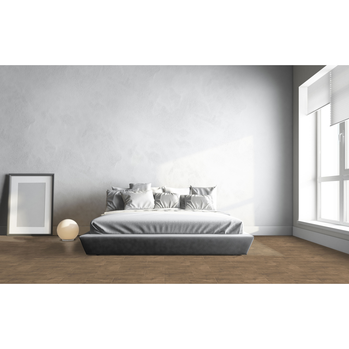 A Hardwood Nut barna színű gres padlólap a természetes fa megjelenését ötvözi a gres burkolatok tartósságával. 15×60 cm-es mérete és meleg, dióbarna árnyalata elegáns, meghitt hangulatot teremt otthonodban. Famintás felülete élethűen idézi a fa textúráját, miközben karbantartása egyszerűbb és ellenállóbb a mindennapi igénybevétellel szemben.