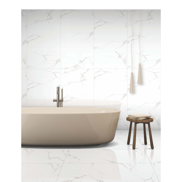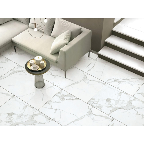 A Statuario Classic padlólap, mérete: 60x120cm, 1,44m2/csomag, márványos, fehér színben.