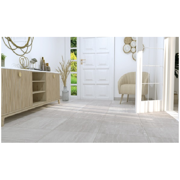 Casabella gres fagyálló padlólap, szürke színben, fényes graníliás felülettel, 59×59cm méretben, PEI 4 kopásállósággal, R9 csúszásállósággal, 1,39 m2/csomag kiszerelésben.