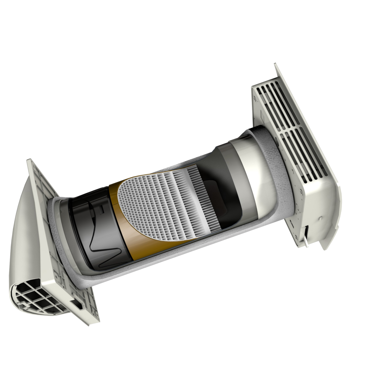 Marley MEnV180 frisslevegős hőcserélő - díszszegély. 240x240x60 mm - furatátmérő: 180 mm - a kiáramló levegő előmelegíti a beáramló friss levegőt - egy készülék 60-70 m3 folyamatos alapszellőztetésére alkalmas - külső falvastagság: 280-500 mm - 3 sebességfokozat - teljesítmény: 3/4,5/7 W - légszállítási teljesítmény: 16/25/37 m3/h - hangnyomás (3 m): 22/29/35 dB(A) - hővisszanyerési fok: 79,1-85%