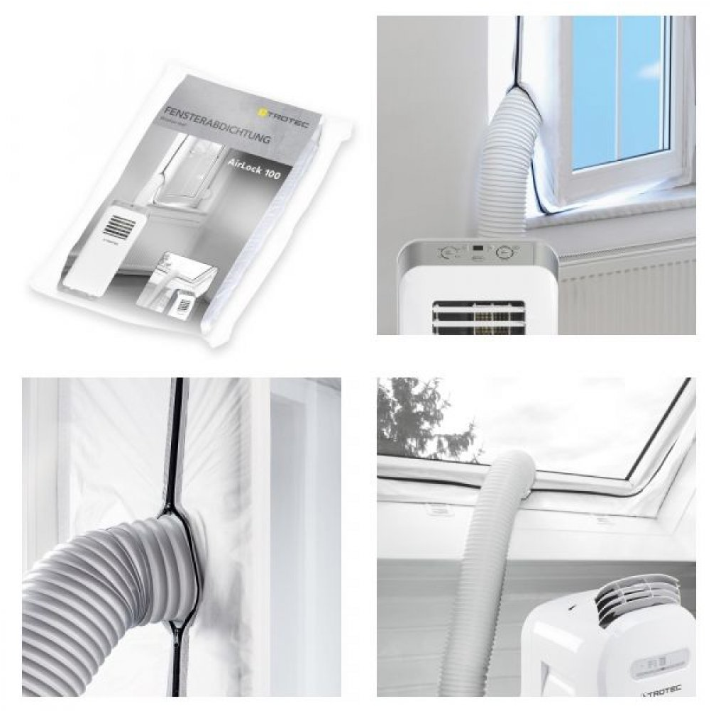 Néhány egyszerű fogással felszerelhető az ablakkeret és az ablak közé a tömítés, és a mobil klíma elvezető csövének egy zipzár segítségével tetszőleges helyen biztosíthatunk vele nyílást, a résnyire nyitott ablakon, hogy így vezessük ki a meleg levegőt. Így ez a praktikus segédeszköz megakadályozza a meleg levegő visszaárámlását. Strapabíró, fényáteresztő, vízálló anyagból készült, ami ráadásul speciális, alacsony hővezető tulajdonságokkal bír, így használatával azonnal energiát takaríthatunk meg, és a kiadás hamar megtérül. Szigetelő hatása azonnal érezhető. Ha elhagyjuk a lakást, az ablak gond nélkül becsukható a felszerelt tömítéssel együtt, így a biztonság szavatolt. Az AirLock 100 ablaktömítés egyébként nem csak mobil klímákhoz használható, hanem más célokra is, mint pl. szárítógépek, levegőelvezető készülékek stb. kiegészítéseként, egész éves használat esetén is. Minden szokásos ablaktípushoz felszerelhető, melynek kerülete nem haladja meg a 400 cm-t: mindegy, hogy jobb- vagy bal szárnyas, billenő vagy tetőtéri ferde ablakról van is szó. Pillanatok alatt rögzíthető, nem szükséges hozzá szakember vagy szaktudás.