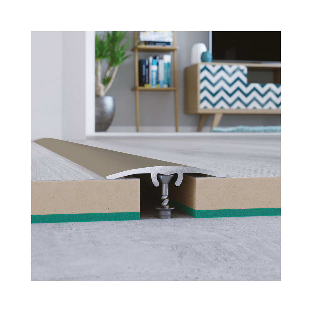 Alumínium kiegyenlítő profil titán színben és leüthető kivitelben. A kiegyenlítő profil elengedhetetlen kiegészítő a padlóburkolás során. Segít a különböző padlófelületek közötti szintkülönbségek, valamint illesztések kiegyenlítésében. Főként a padlóburkolatok közötti átmenetek simítására alkalmazzák. A profilok segítik eltüntetni az apró hibákat, ezáltal a végeredmény profi és esztétikus.