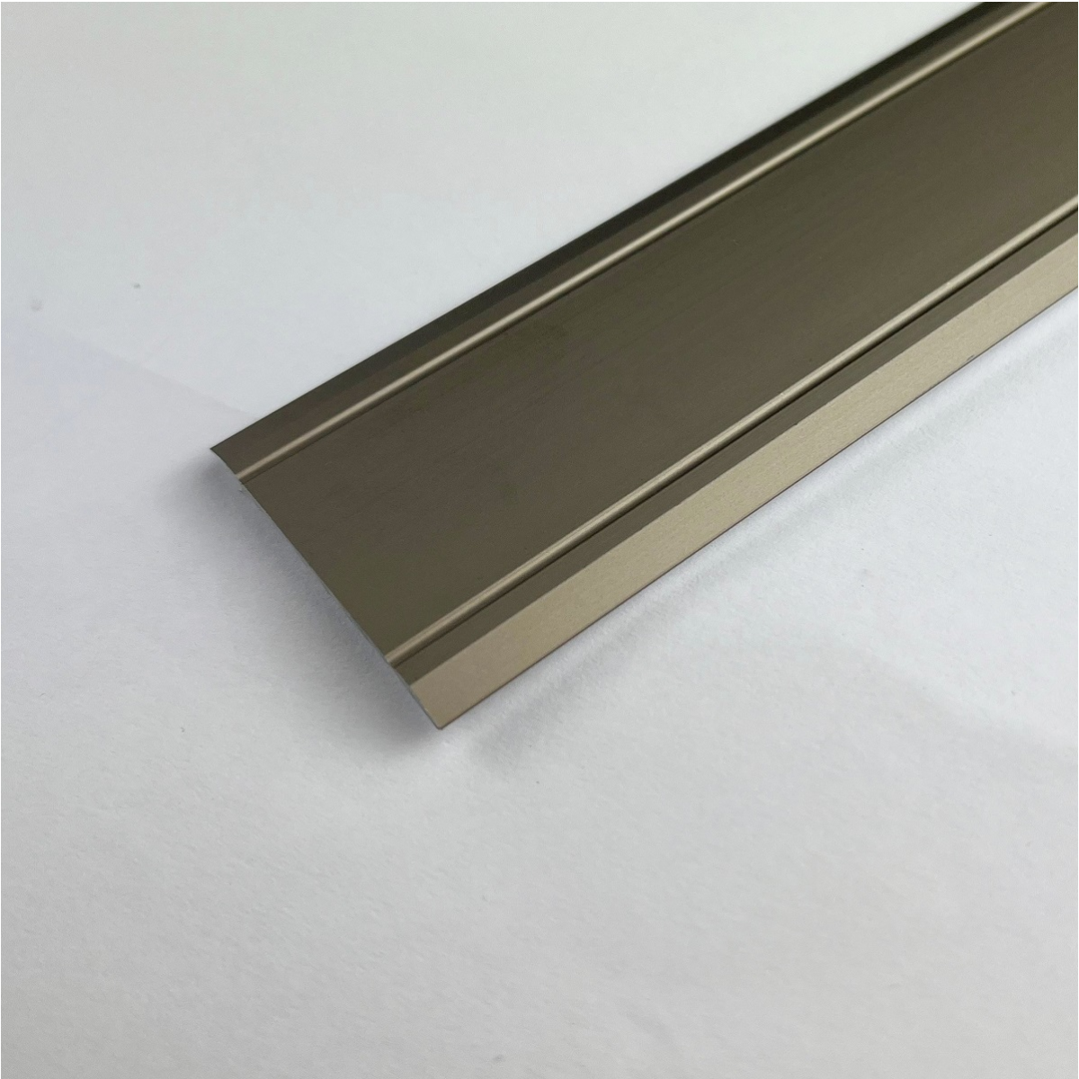 A lapos profil visszafogott eleganciával illeszkedik a környezetébe. Nagyobb terhelés esetén a jó ellenállással bíró rozsdamentes acél profil javasolt, míg az eloxált felület színeivel látványban és stílusban meghatározó képet ad a helyiségnek. Utólagosan felhelyezhető egyszintű profil, amely az öntapadós, zselés réteg segítségével tapad a burkolatra.
