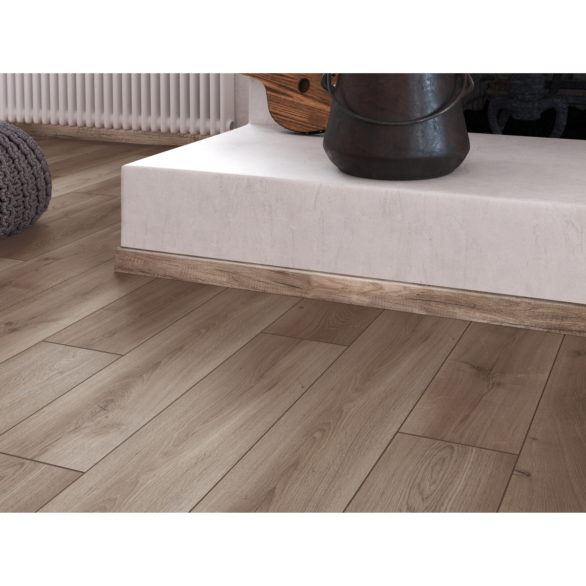 A Classen Clip rendszerű szegélyléc Monument tölgy színben elegáns és karakteres kiegészítője lehet bármilyen padlóburkolatnak. A természetes fa hatású mintázat letisztult összhatást nyújt, míg a strapabíró MDF alapanyag hosszú távon is megbízható megoldást biztosít.