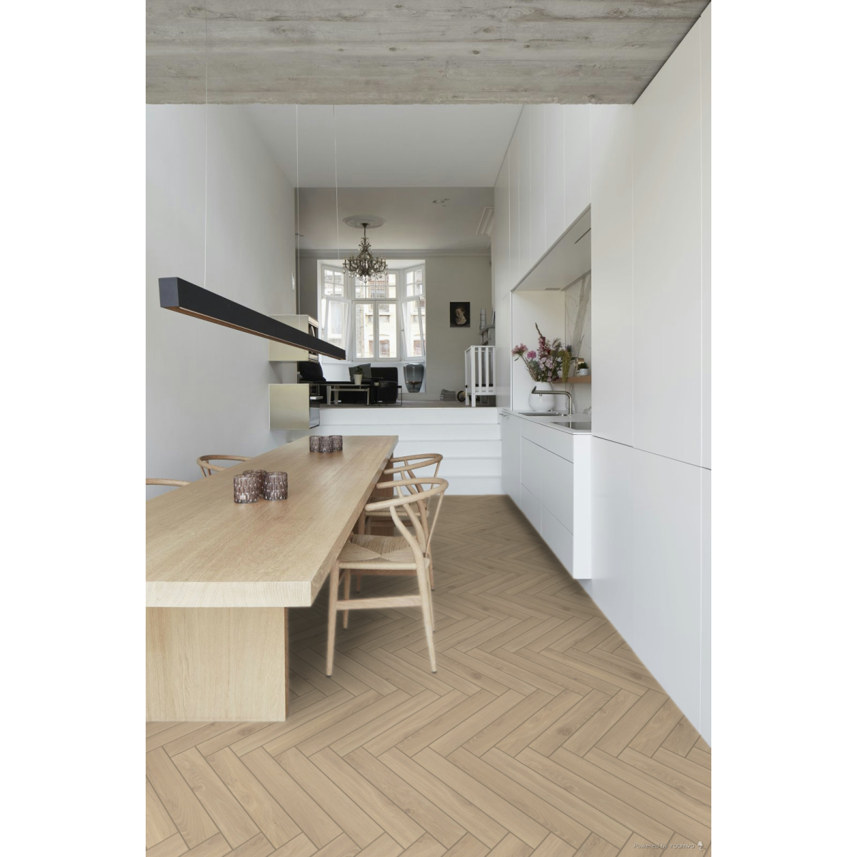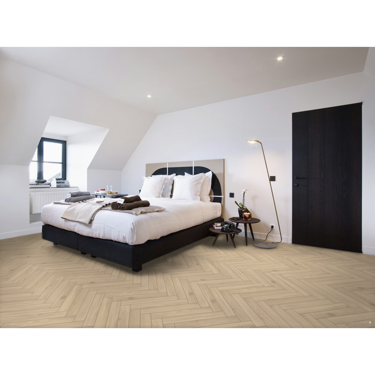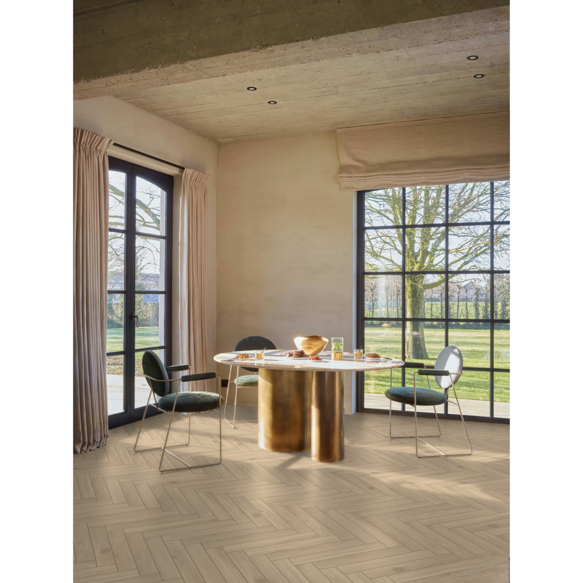 A Chateau Bloom homok színű laminált padló stílusos és praktikus választás, ha különleges mintázatú, mégis strapabíró padlóburkolatot keresel. Vízálló kialakítása révén ellenáll a kiömlő folyadékoknak, így ideális választás otthoni vagy kisebb forgalmú üzleti terekbe is. Az AC5/33 kopásállósági besorolású padlólap padlófűtés mellett is alkalmazható, lerakása pedig halszálka, mozaik, hajópadló vagy létra mintában is lehetséges.