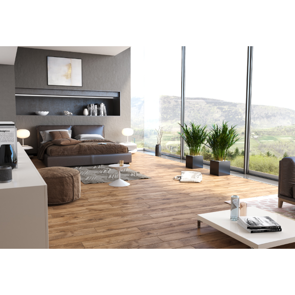 24 órás vízálló lamináltpadló, tölgy színben. HDF alapon, 4 oldalon V-fugás, Megalock click rendszerrel.