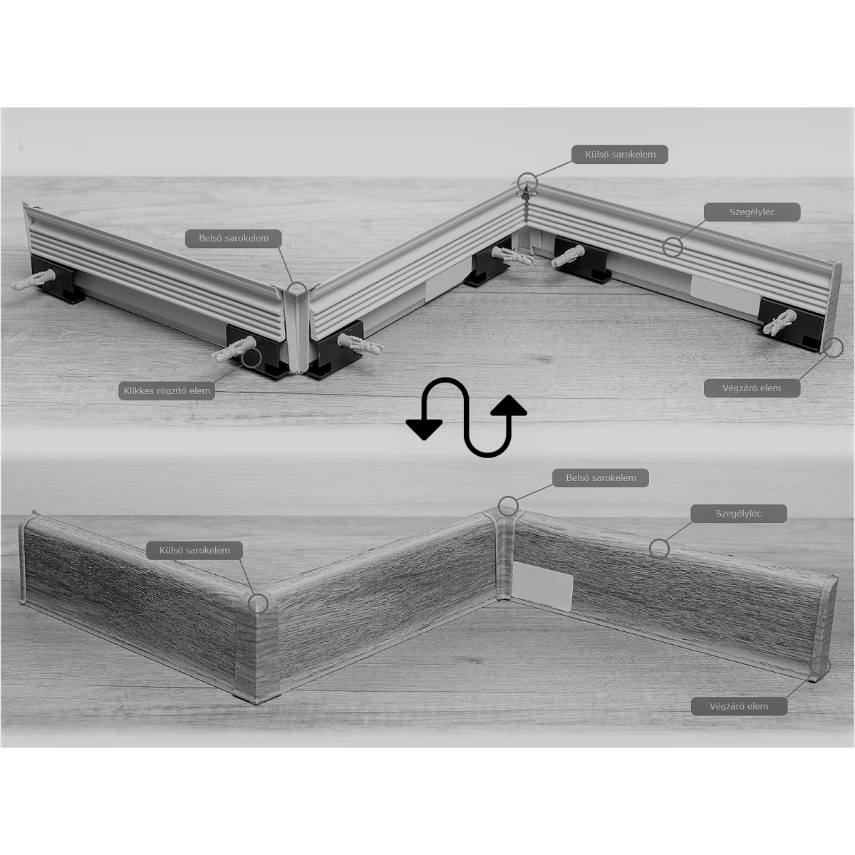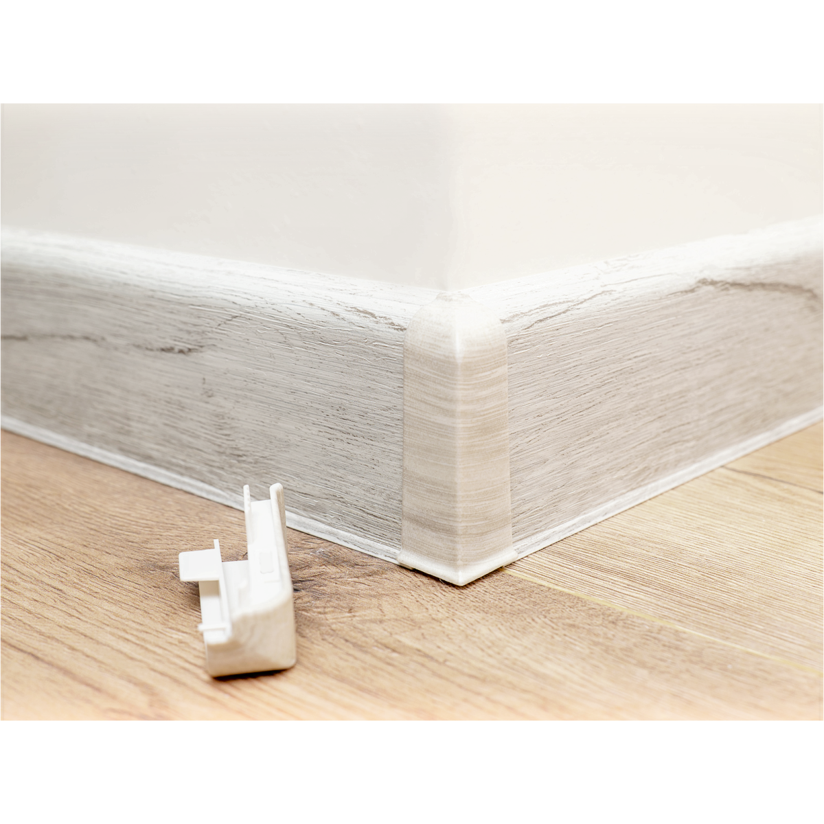 Arbiton Vigo 60 hibrid technológiájú vízálló szegőléc belső sarokelem bolton tölgy színben. A belső sarkok a padlóburkolatok befejezésének egyik nélkülözhetetlen elemei, melyek segítenek a burkolat éleinek a tökéletes illeszkedésében, illetve védelmében. Letisztult, ugyanakkor elegáns átmenetet biztosít két padlóburkolat találkozásánál. Egyszerűen és könnyen telepíthetőek. Megakadályozzák a burkolat széleinek a sérülését, kopását.