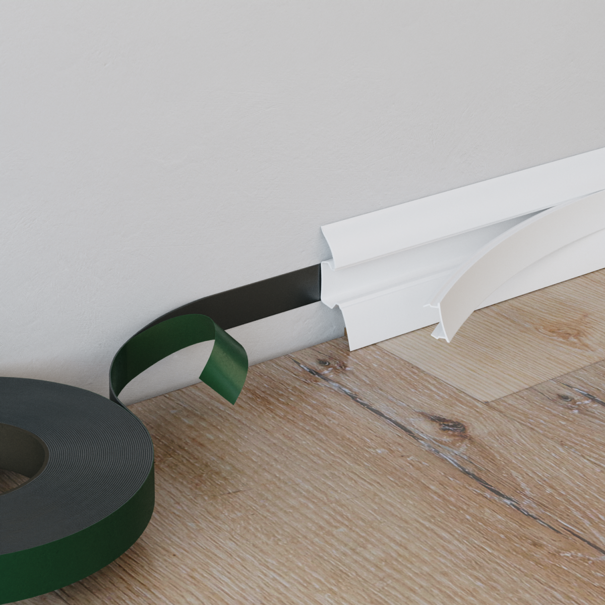 Ollóval egyszerűen a kívánt méretre vágható. Erős tapadást biztosít, hogy a szegélylécek hosszú távon, stabilan a helyükön maradjanak.