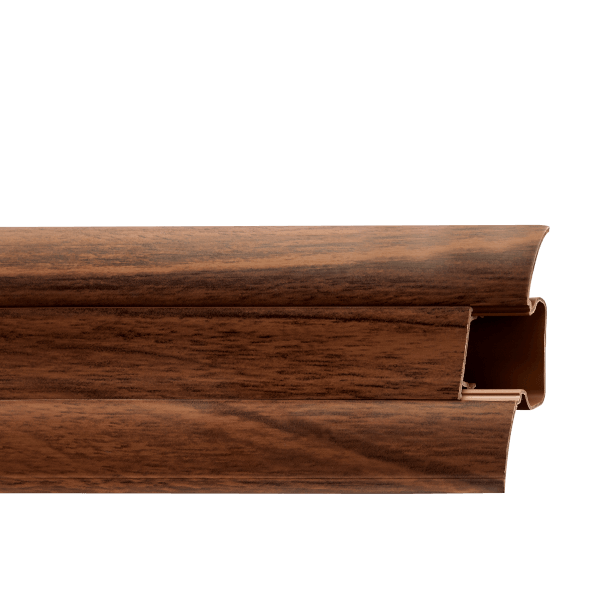 2,5 méter PVC szegélyléc LM55-112 jupiter dió színben, kábelcsatornával.