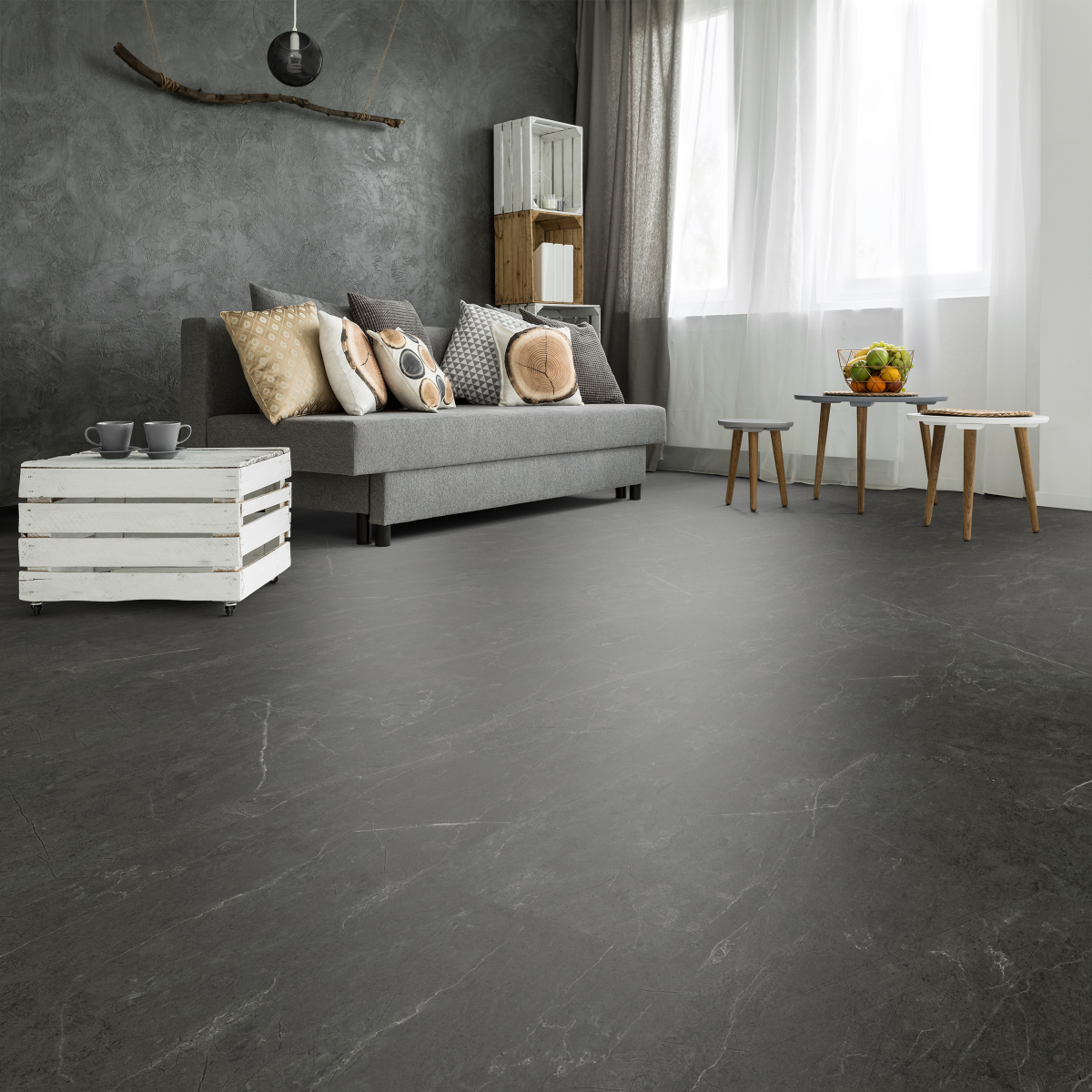 A Domino Graboplast SPC Compact fekete Anne márvány vinyl padló időtálló megoldás, amely egyszerre biztosít elegáns megjelenést, kényelmet és hosszú távú megbízhatóságot.