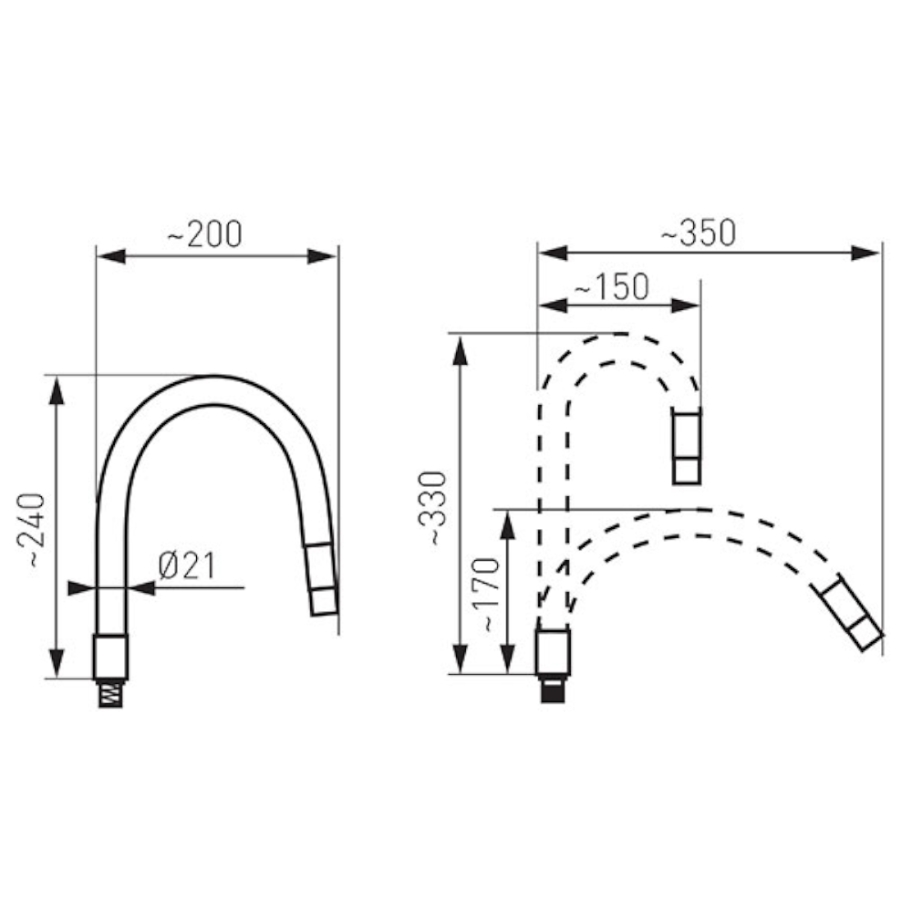 Kompatibilis az ALGEO SQUARE, LUGIO, LUGIO BLACK, RATIO, RATIO BLACK, ZUMBA csaptelepekkel. Rugalmas kifolyócsővel, kifolyócső változtatható beállítással, mélység: 150mm-től 350mm-ig, magasság: 280 mm-től 440 mm-ig, perlátor M22x1, rögzítés 3 mm-es imbuszkulccsal, továbbá háromszoros tömítés O-gyűrűvel.