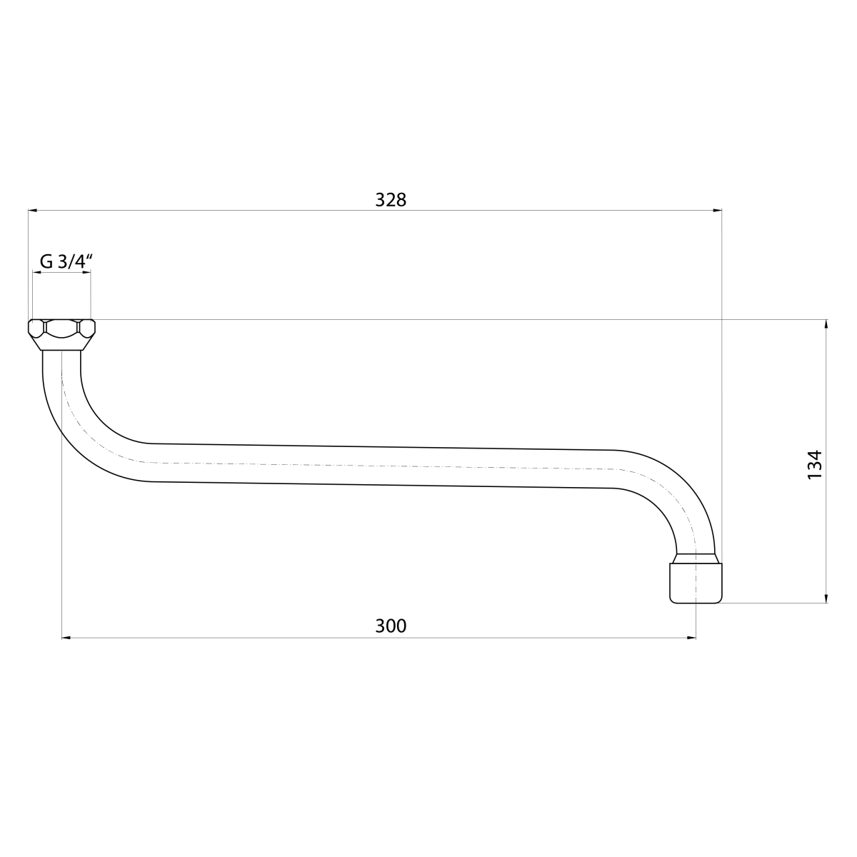 A kifolyócső csatlakozása a csaptelephez 3/4" belső menetes, a cső végén 22 perlátor található.