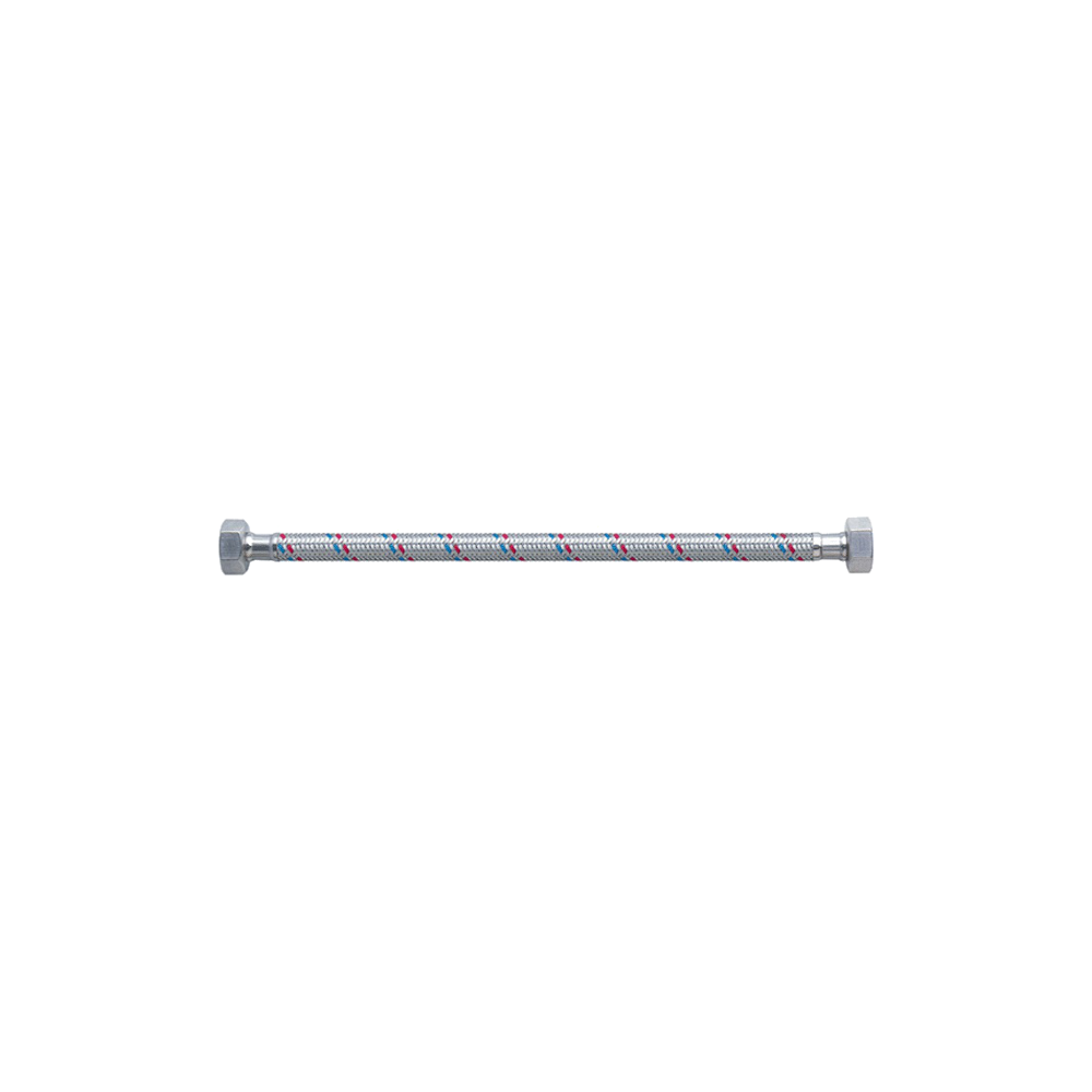 Rozsdamentes szövésű flexibilis bekötőcső, 1/2"-os, 80 cm-es méretben. Belső menetes csatlakozóval mindkét oldalon. Épületgépészeti berendezések, mosdók, csapok, WC-k, bidék, vízmelegítők és egészségügyi berendezések bekötéséhez. A bekötőcsövek az ivó- és technológiai vízellátás területén 10 bar nyomásig és 60°C-ig használhatók. Védőszövet: AISI 304-es rozsdamentes acélból, 95%-os fedési sűrűségű. Csatlakozók: nikkelezett sárgarézből, gumitömítéssel.