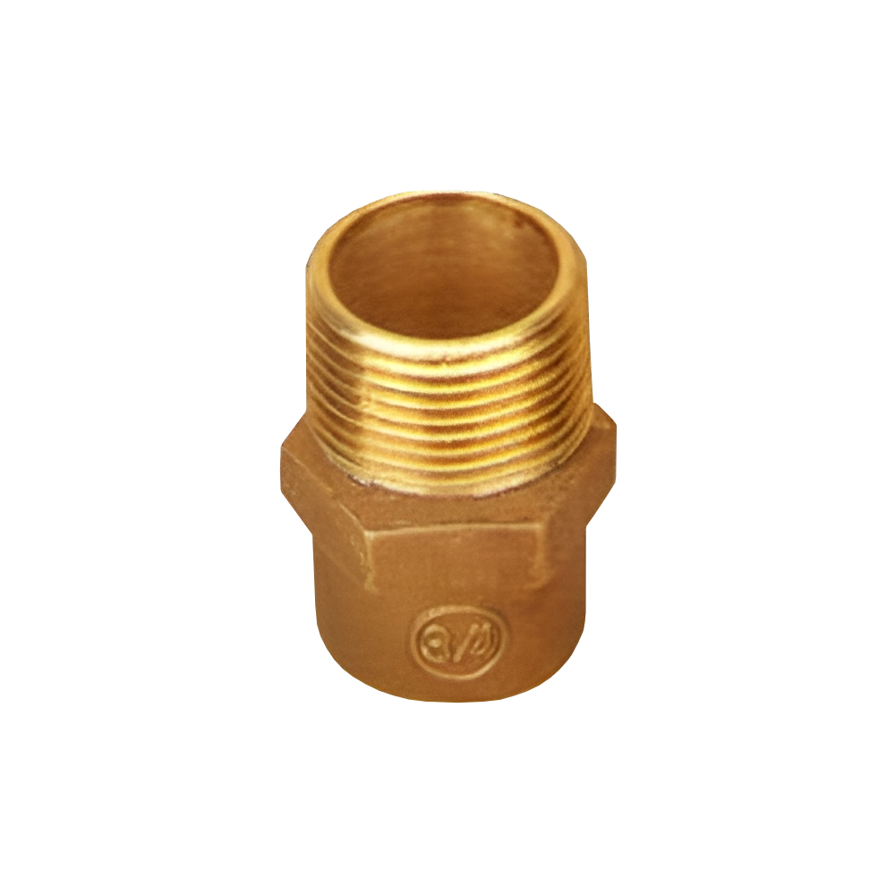 Sárgarézből készült külső menetes csatlakozó, 18-3/4"-os méretben. Hideg- és meleg vizes vezetékek, valamint fűtéscsövek szerelésére alkalmazható.