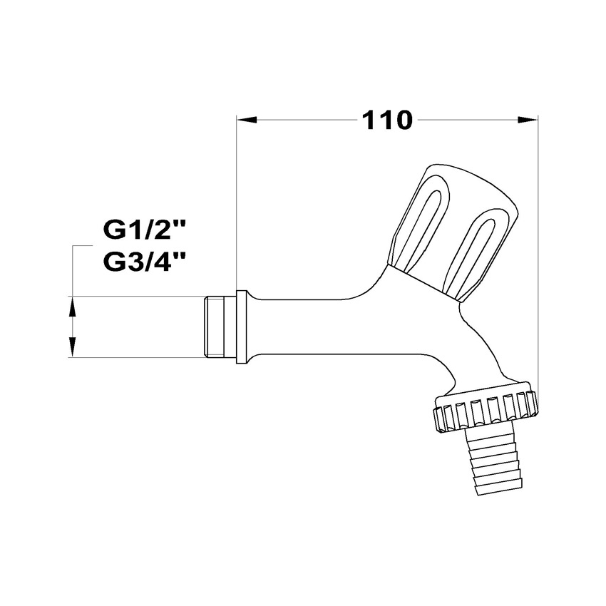 Mofém fali kifolyószelep, 3/4", tömlővéggel.