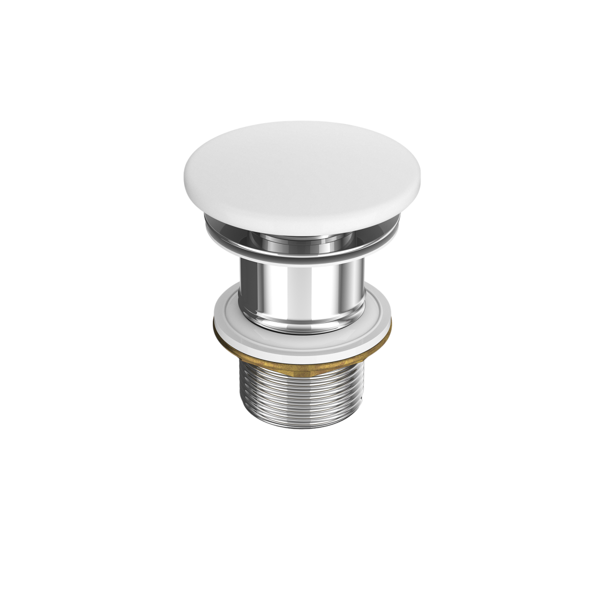 Fehér kerámia dugó, tartós sárgarézből készült szerkezet, szilikon tömítésekkel. Ennek köszönhetően elegáns megjelenésű, ugyanakkor feszes és megbízható, rendkívül könnyen telepíthető és használható. Színben tökéletesen illeszkedik a Larga sorozat kerámiáihoz. Túlfolyó nélküli mosdókagylókhoz tervezték.