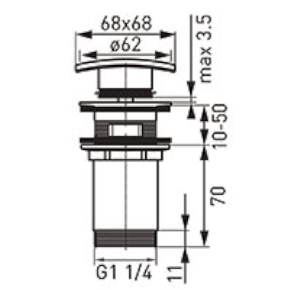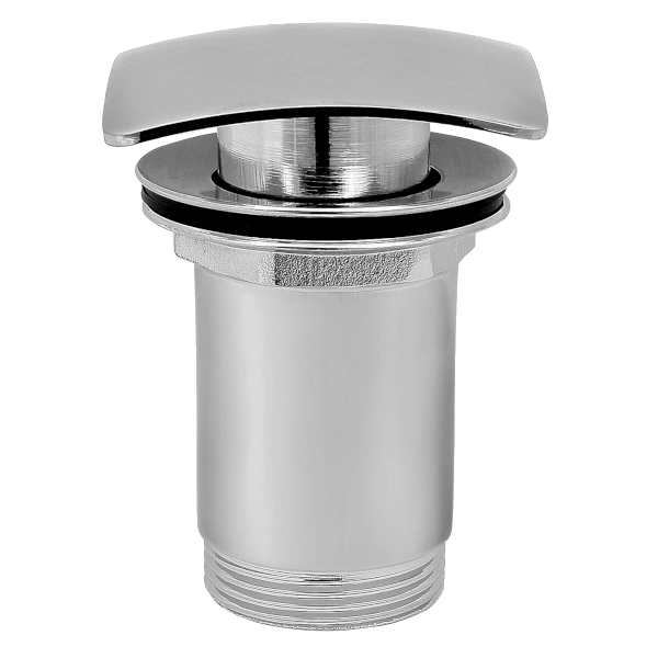 Quadro click-clack lefolyószelep túlfolyós mosdóhoz, G5/4". Rozsdamentes test, rozsdamentes, króm fém dugó, mely bármely normál lefolyóval rendelkező mosdóhoz illeszkedik.