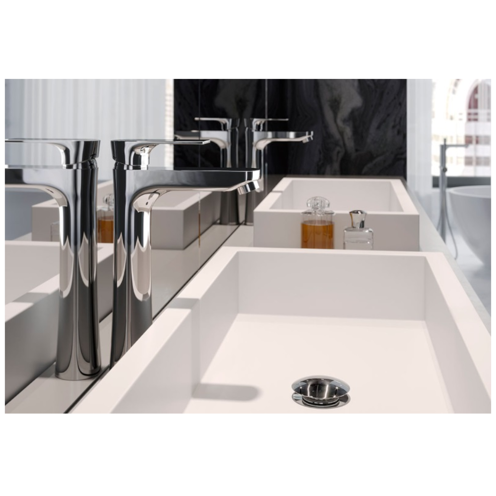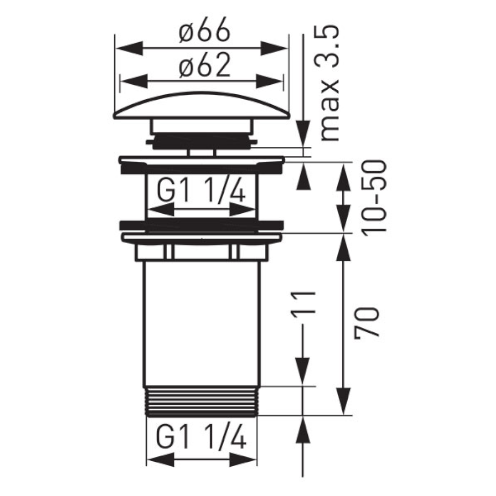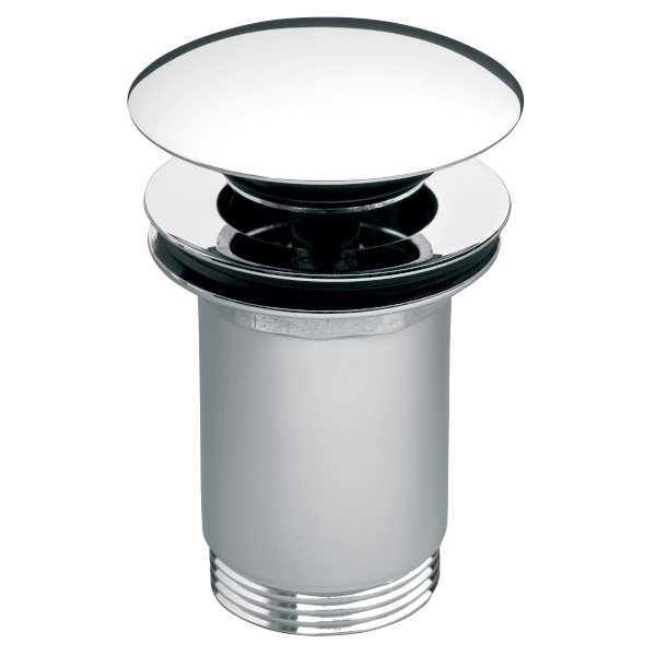 Rotondo click-clack lefolyószelep túlfolyós mosdóhoz, G5/4". Rozsdamentes test, rozsdamentes, króm fém dugó, mely bármely normál lefolyóval rendelkező mosdóhoz illeszkedik