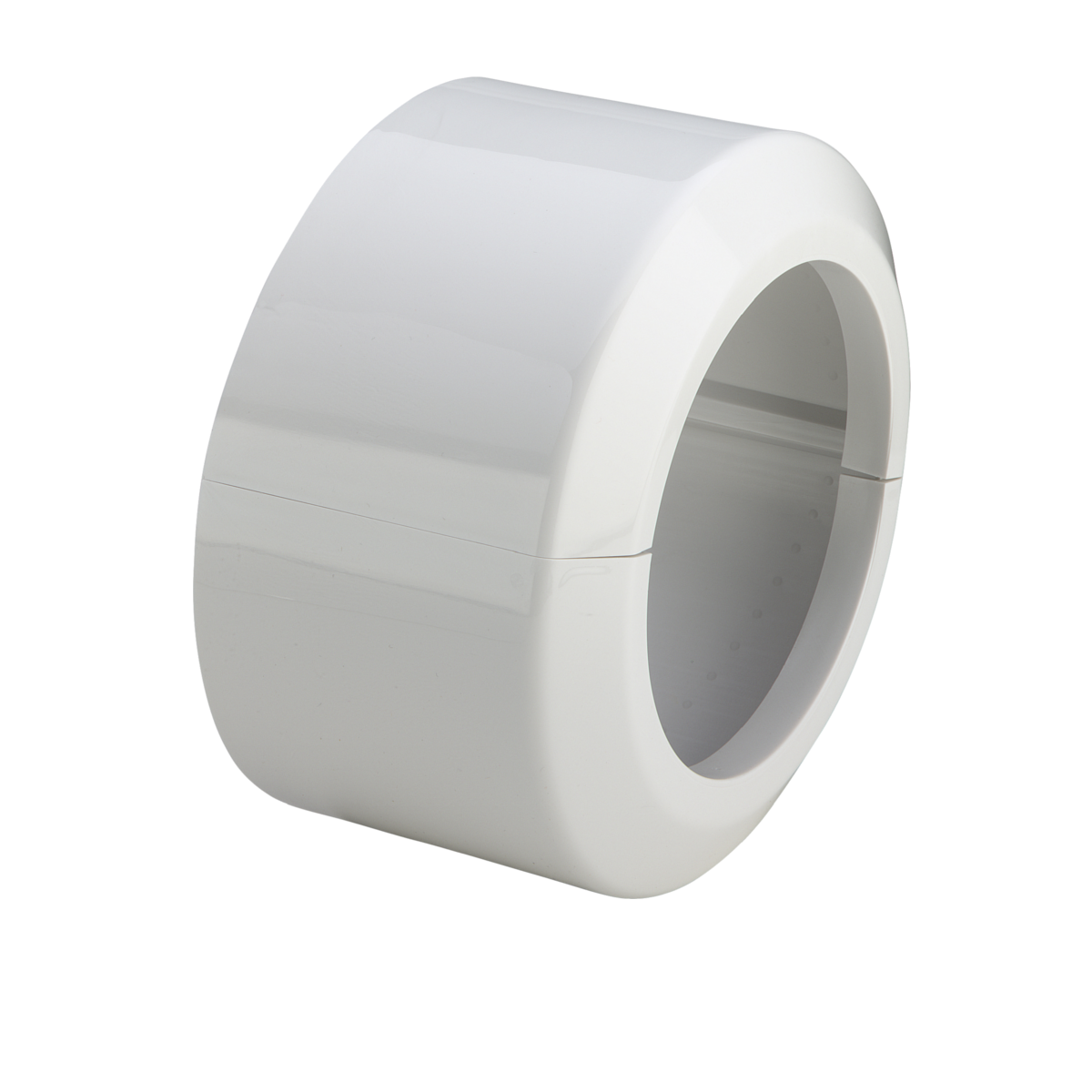 Viega rozetta WC-csatlakozóívhez/-csőhöz, NA 100 mm, átmérő: 165 mm, H 90 mm, fehér színű, műanyag, kétrészes, jelölés 22,5°-os vágáshoz.