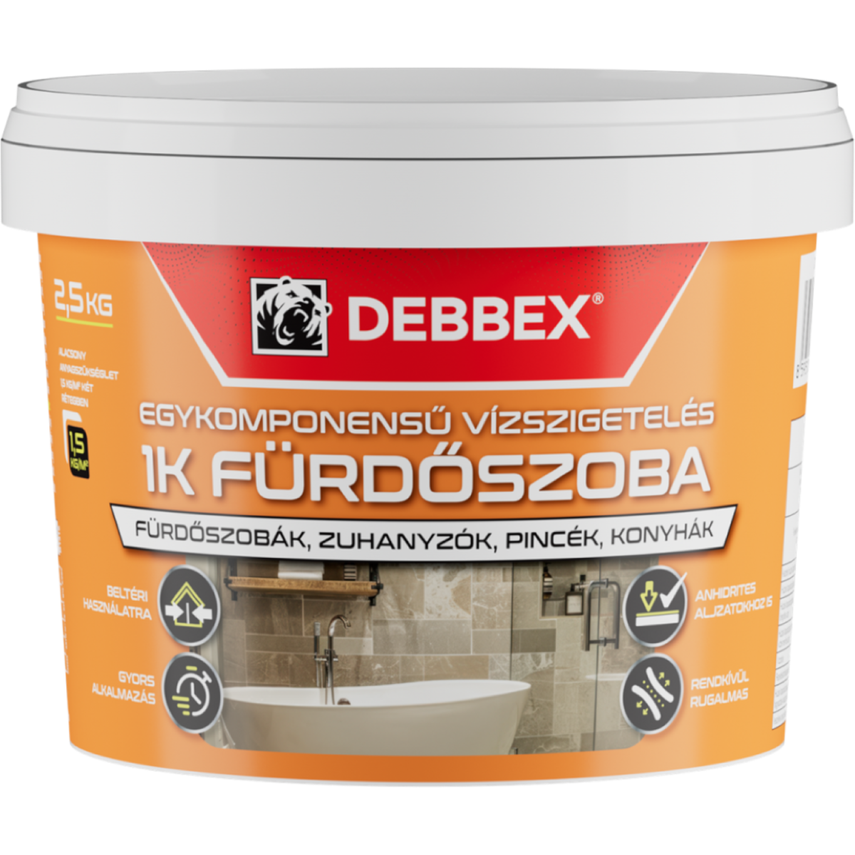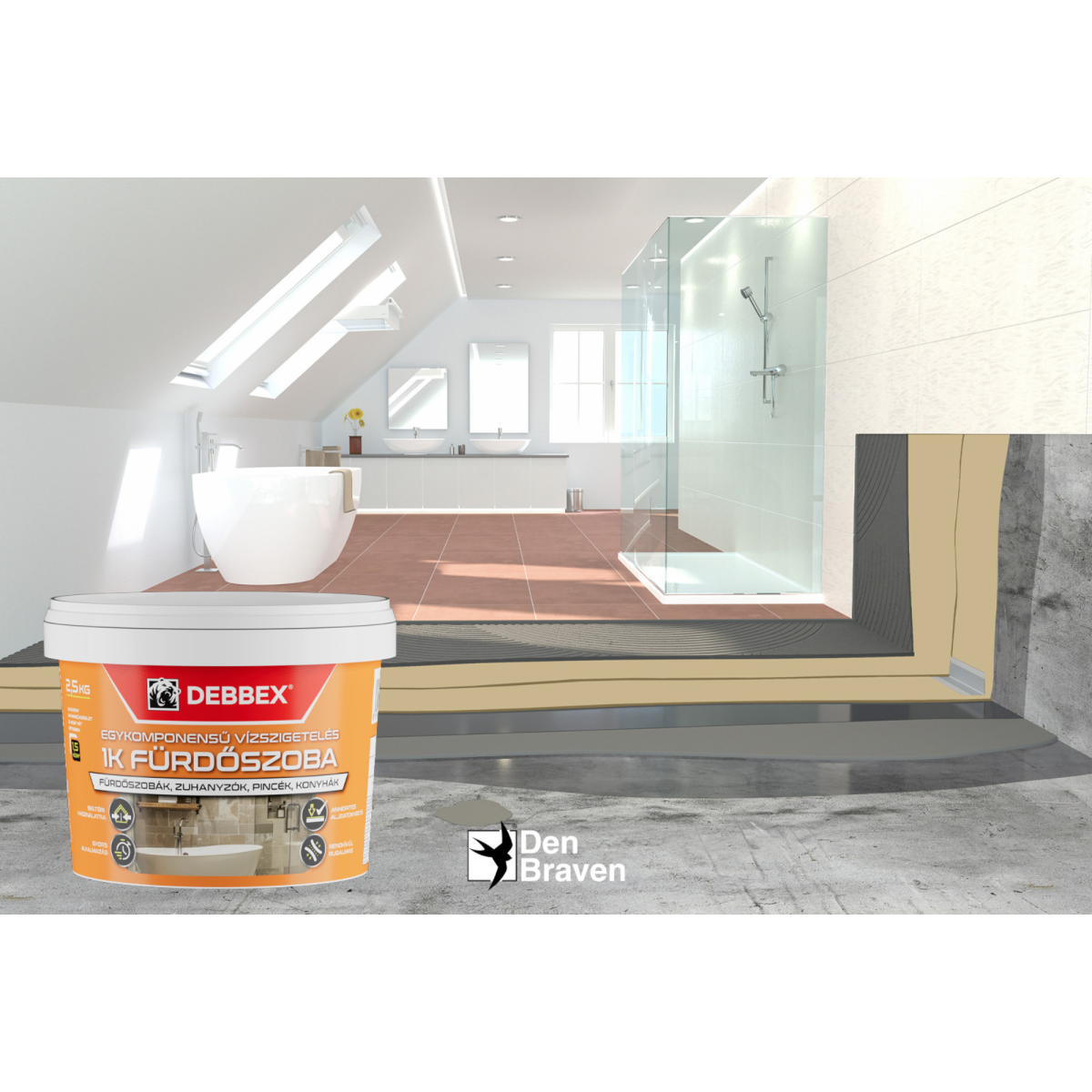 Ez az egykomponensű, oldószermentes vízszigetelő anyag kifejezetten beltéri felhasználásra készült. Fehér színű, pasztaszerű állagának köszönhetően azonnal felhasználható, nem igényel keverést. Feladata, hogy hidegburkolás előtt védőréteget képezzen a felületen, megakadályozva a nedvesség átjutását olyan helyeken, ahol állandó víznyomás nem éri a burkolatot.