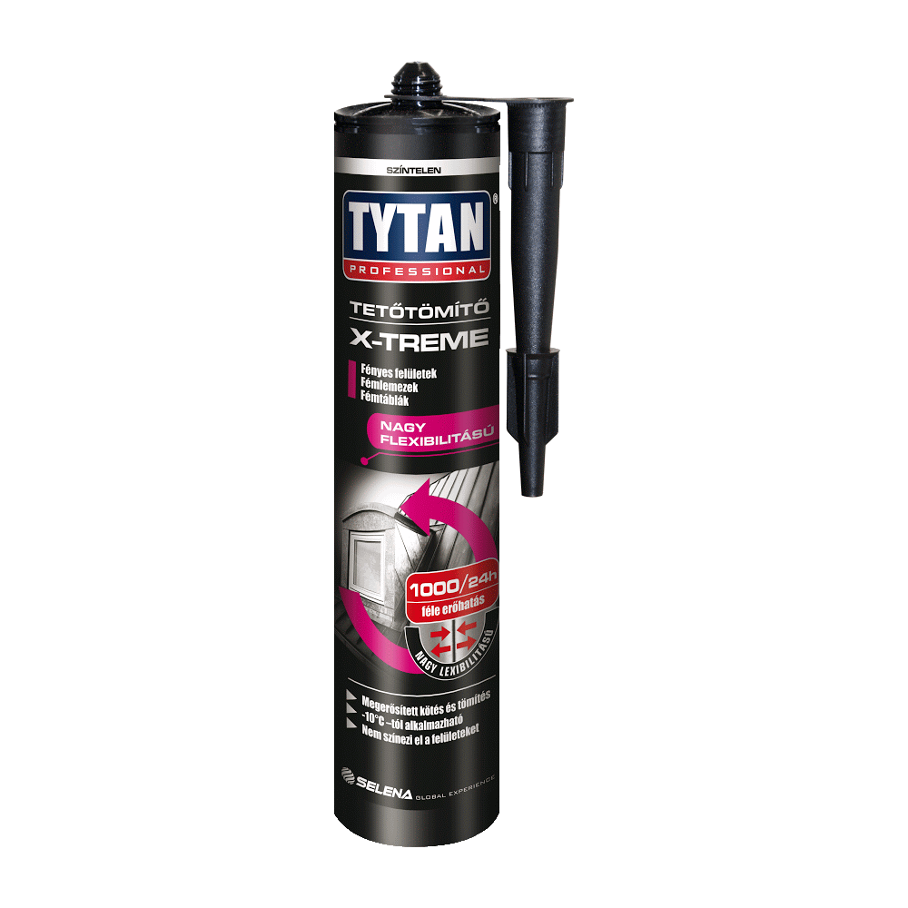 Tytan X-treme szálerősített tetőtömítő- 310 ml- szürke- falakon, tetőkön, üvegen stb. lévő repedések, hasadások tömítésére- különböző anyagfelületű elemek ( pl. fa, üveg, beton, fém, műanyagok) kombinálásához- csatlakozások, tömítések létrehozásához hajókban- fémlemezek, csatornák tömítéséhez- szálerősített kaucsuk- felhasználási hőmérséklet: -10-+40°C- nyitott idő: 2-10 perc- kikeményedés: 1-1,5 mm/24 óra- hőellenállás: -20-+90°C- térfogatcsökkenés: 5-9%- szakadási nyúlás: 100-120%- szakítószilárdság: 0,75 Mpa- gomba- és penészálló- vízzel teljesen elárasztott felületeken és bitumenes anyagokkal együtt is alkalmazható- festhető