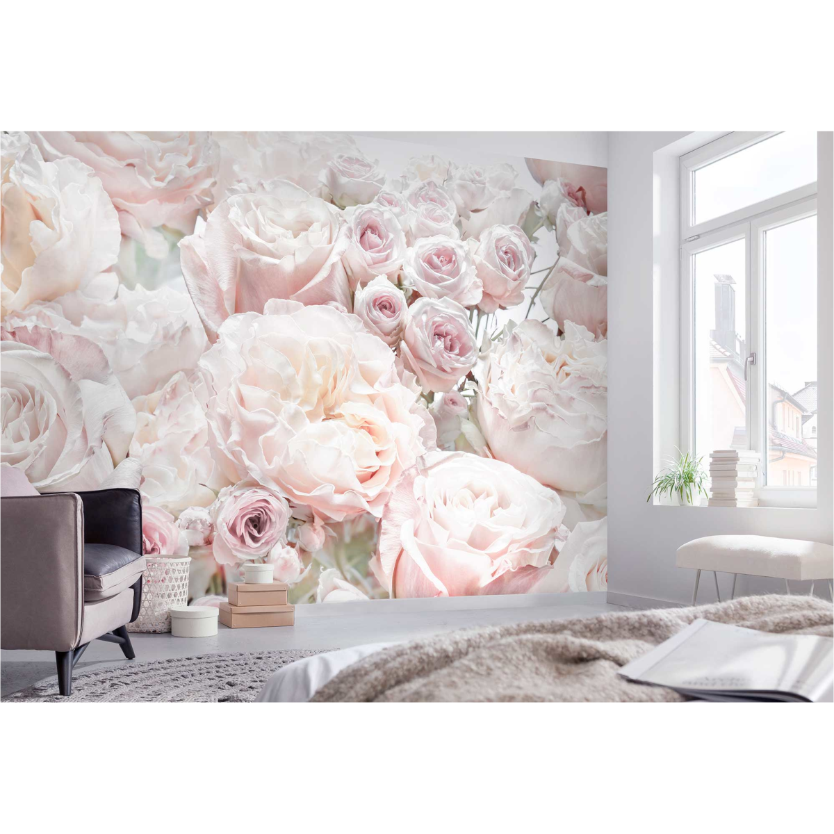 Fotótapéta tavaszi rózsák mintával, 368x254 cm méretben.