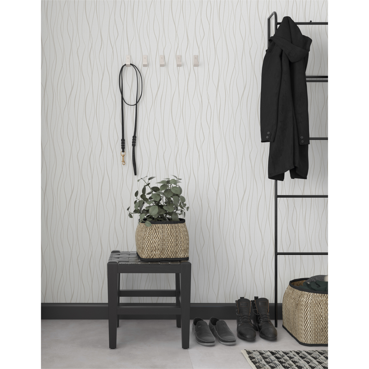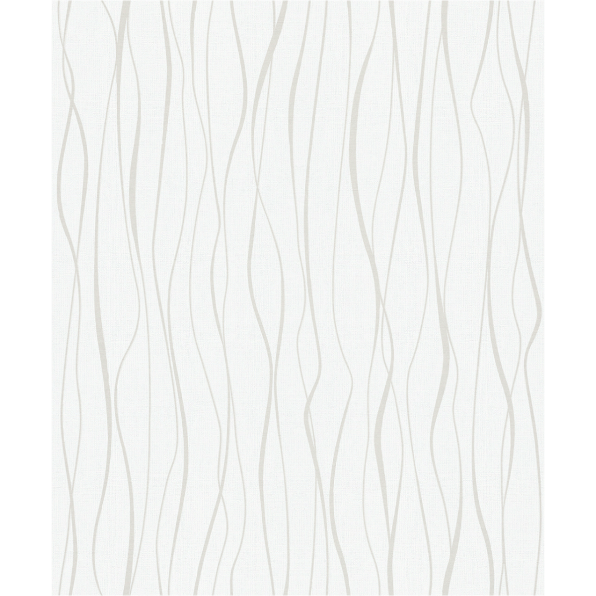 Vlies alapú habtapéta fehér-ezüst hullám mintás.