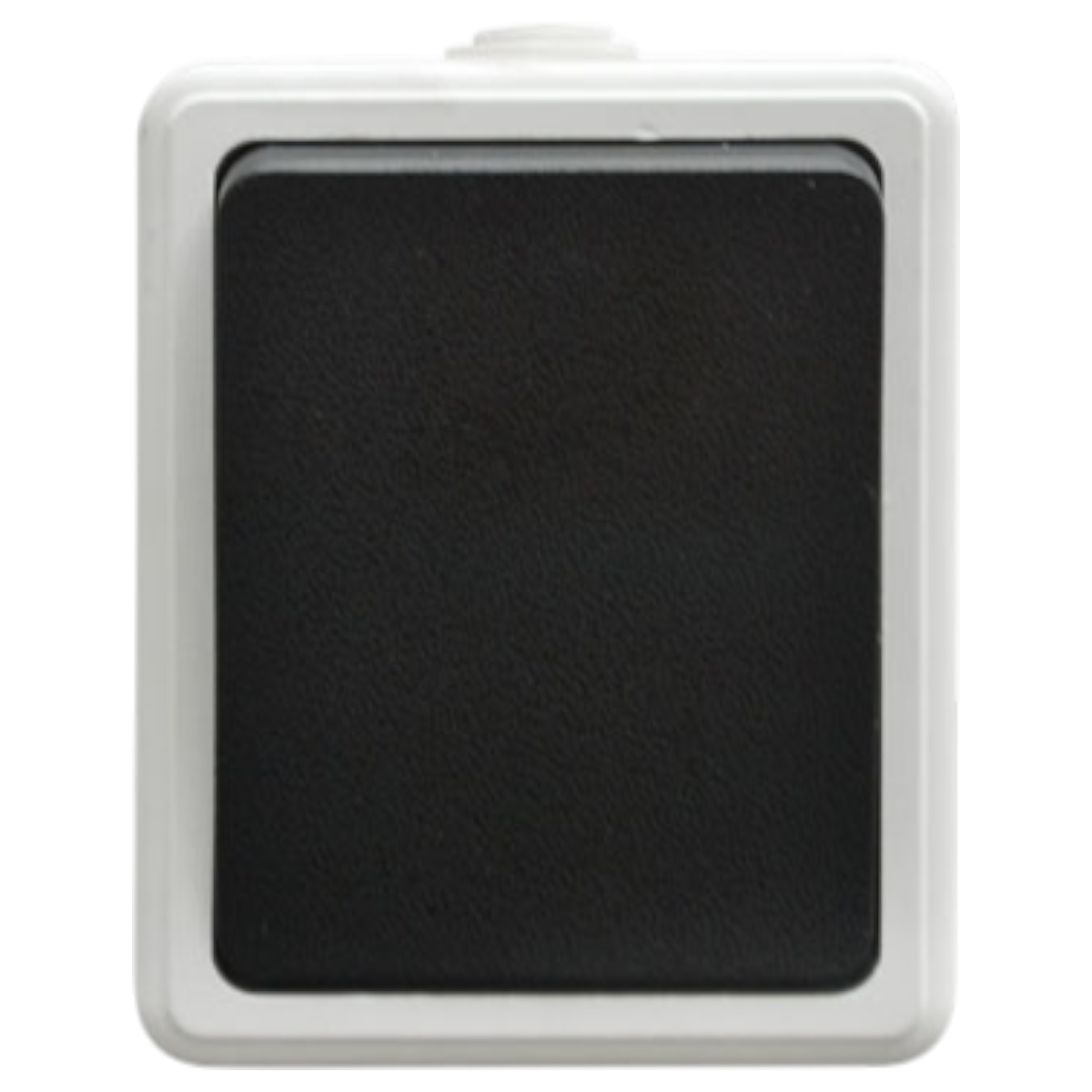 Athens kültéri, falon kívüli váltókapcsoló szürke színben. Egy lámpa két helyről történő kapcsolására alkalmas. IP54 védelem: kültér: por ellen védett (nem károsító mértékű behatolás megengedett); fröccsenő víz ellen védett minden irányból.