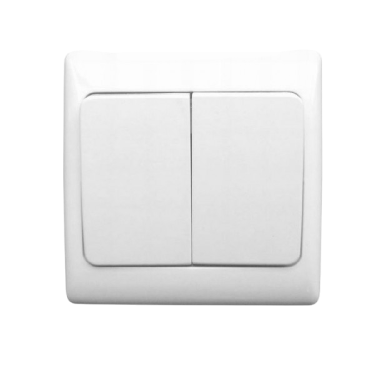 Olympic süllyesztett dupla váltókapcsoló fehér színben, kerettel. IP20 védelem: beltéri használatra. Két billentyűből álló kapcsoló. Két alternatív kapcsoló egybeszerelve.