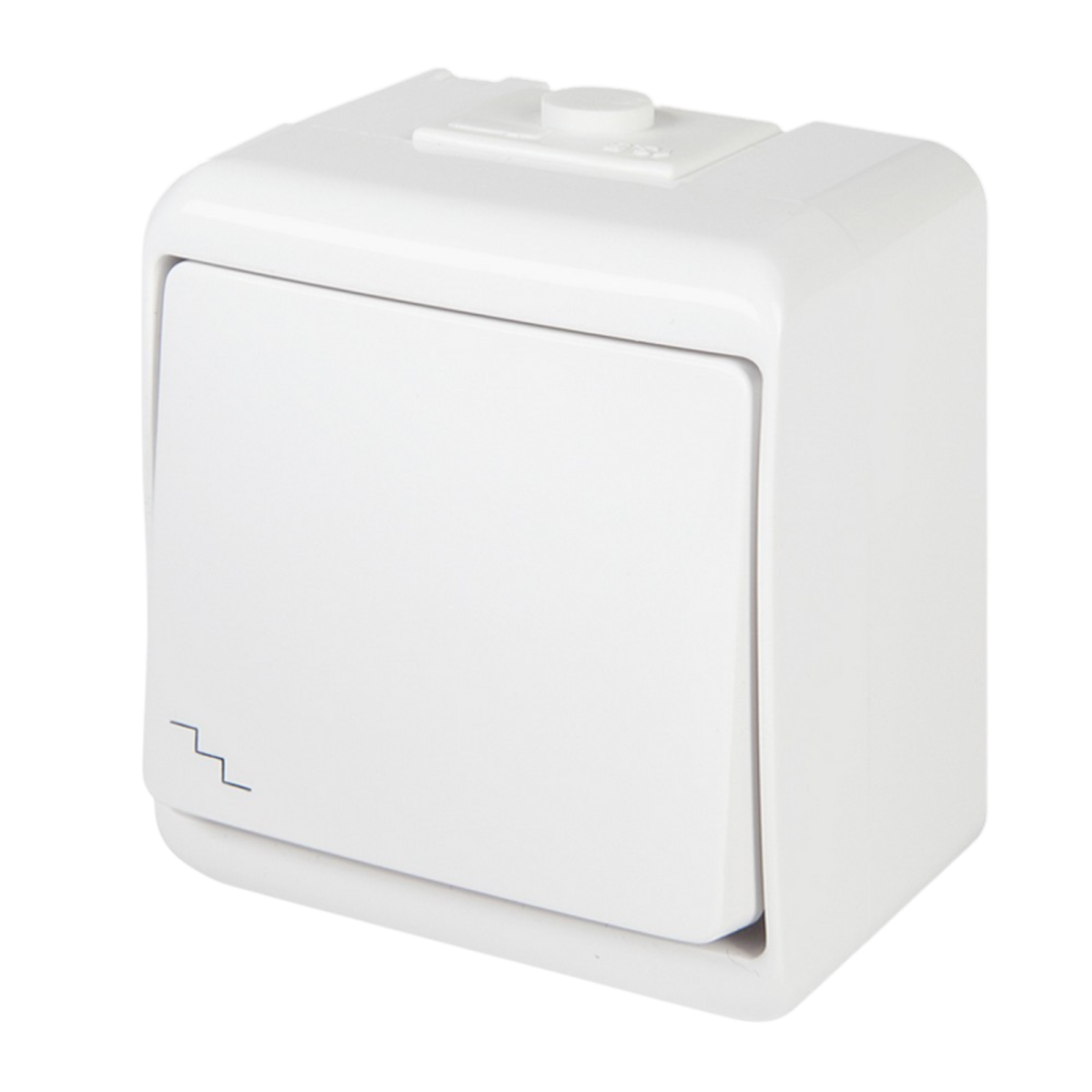Aquastar váltókapcsoló kültéri használatra, komplett, fehér színű, falon kívüli kivitelezésben. A váltókapcsoló ideális a több helyről történő világításvezérléshez. Kiváló minőségű anyagok felhasználásával készült így hosszú élettartamot garantál. IP54 védettségi fokozatának köszönhetően ideális kültéri használatra, ellenáll a por és víz behatolásának. 10A, 250V, 60Hz.